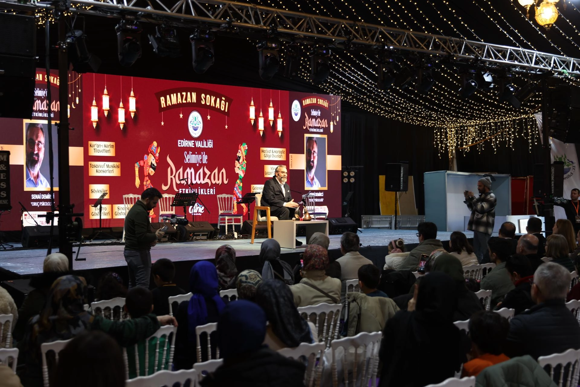 EDİRNE (AA) - Psikoterapist ve yazar Senai Demirci, Edirne Valiliğince Selimiye Meydanı'nda kurulan "Ramazan Sokağı" etkinlikleri kapsamında Edirnelilerle bir araya geldi.