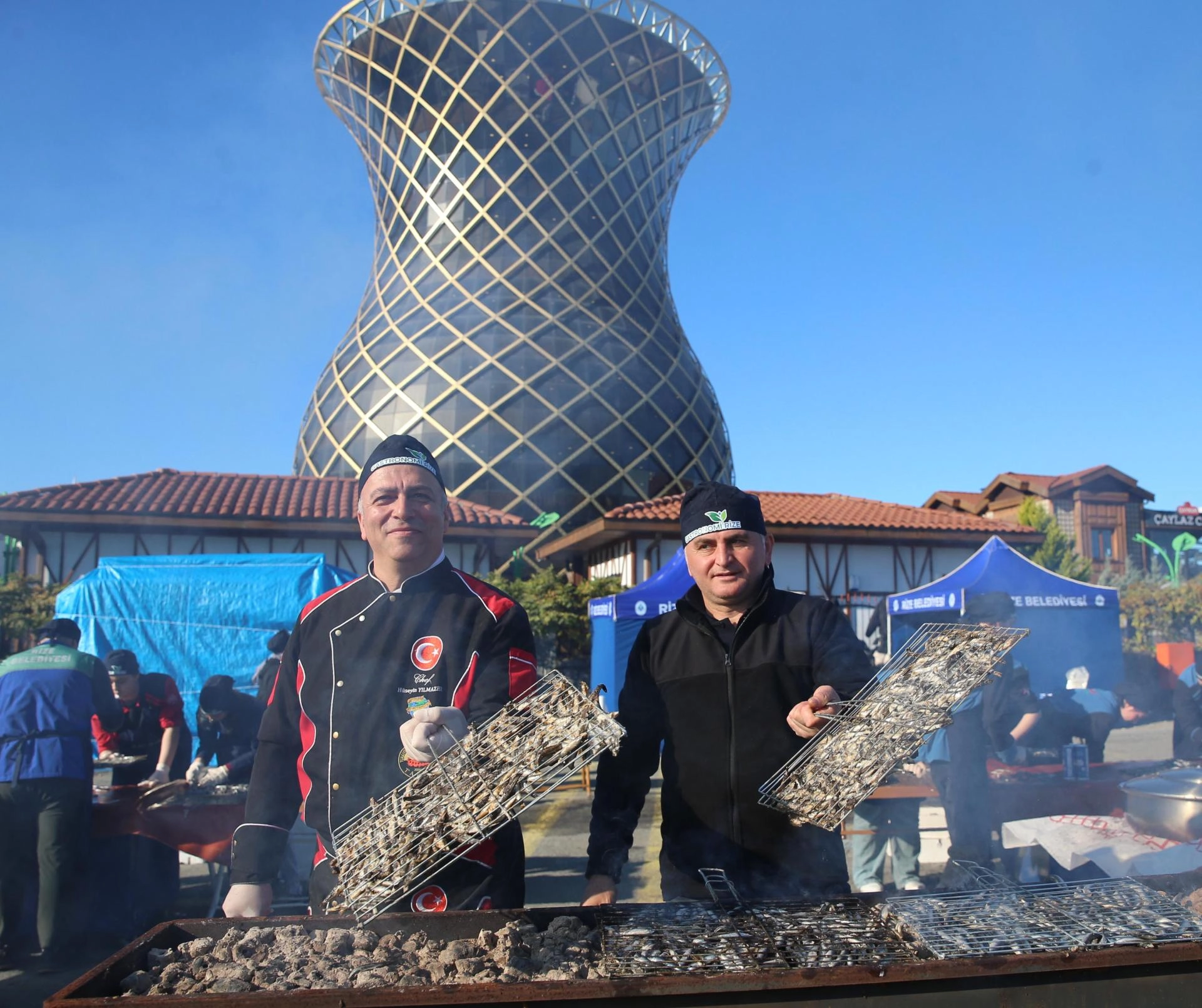 Hamsiyi çay çöpünden elde ettikleri mangal kömüründe pişirdiklerine değinen Metin, "Çayın atıklarından, yüzde 100 belediyemize ait fabrikalarımızda ürettiğimiz bu kömürleri Türkiye'nin dört bir yanına gönderiyoruz." dedi.