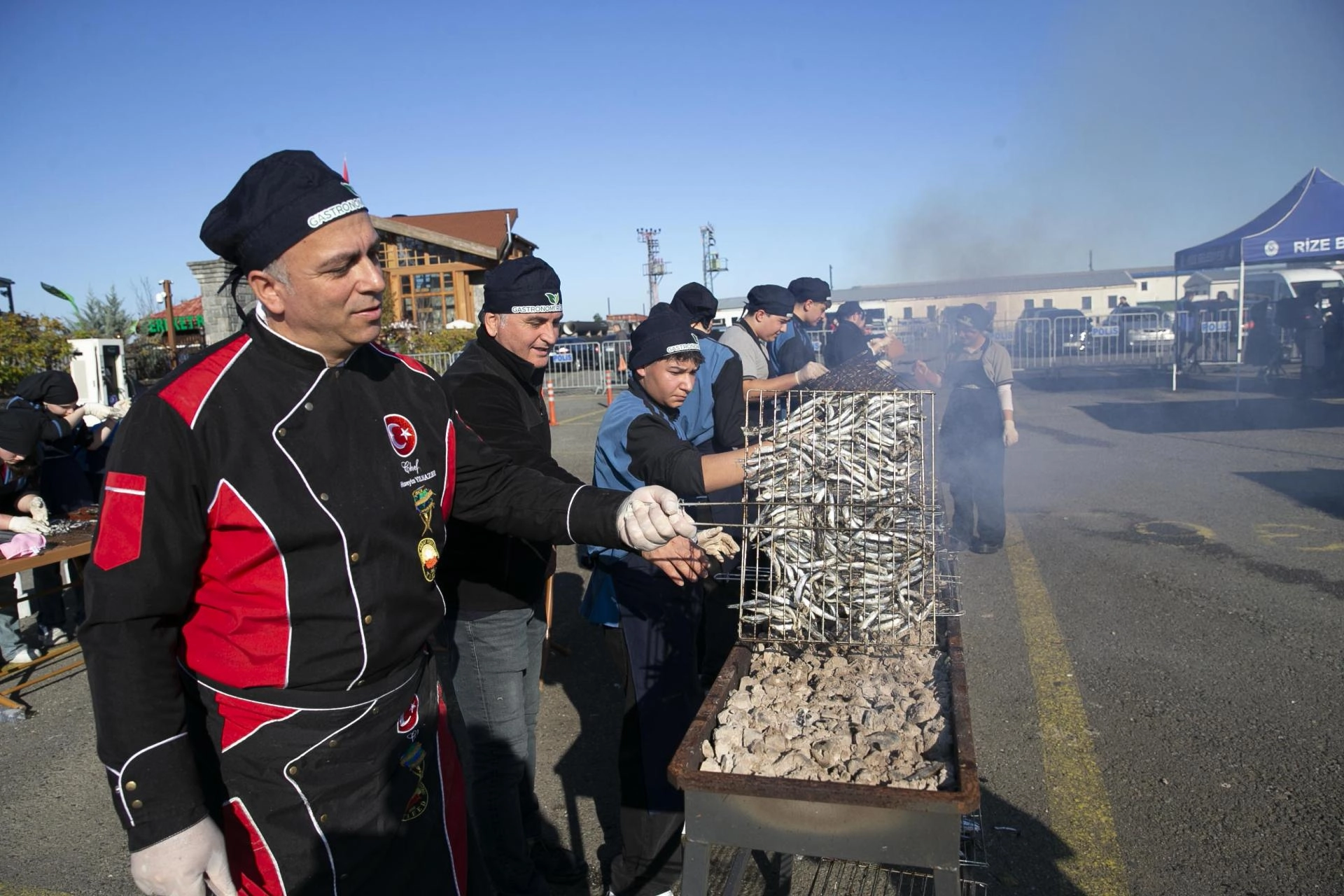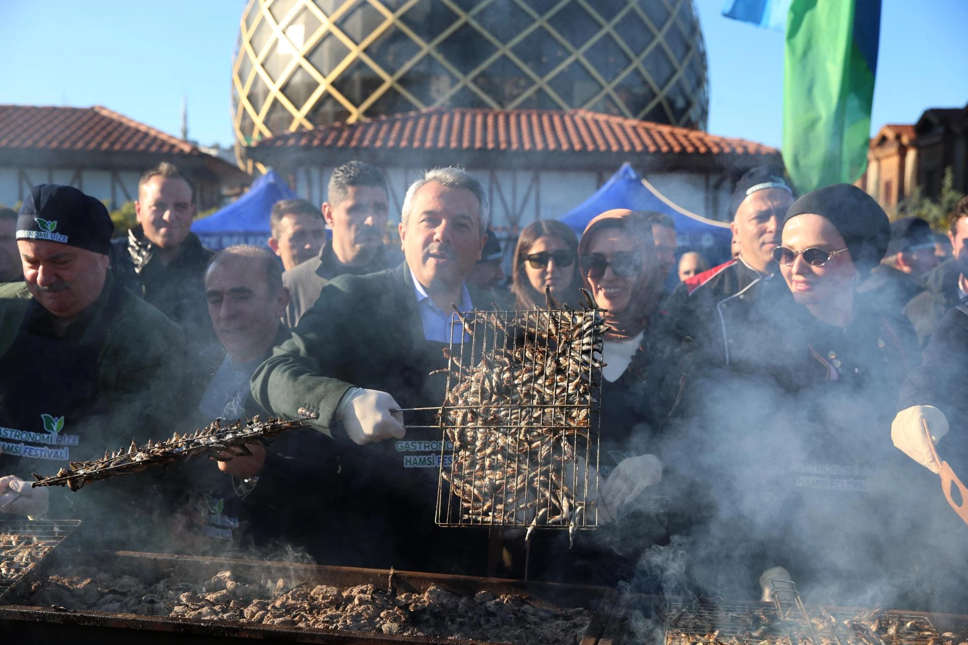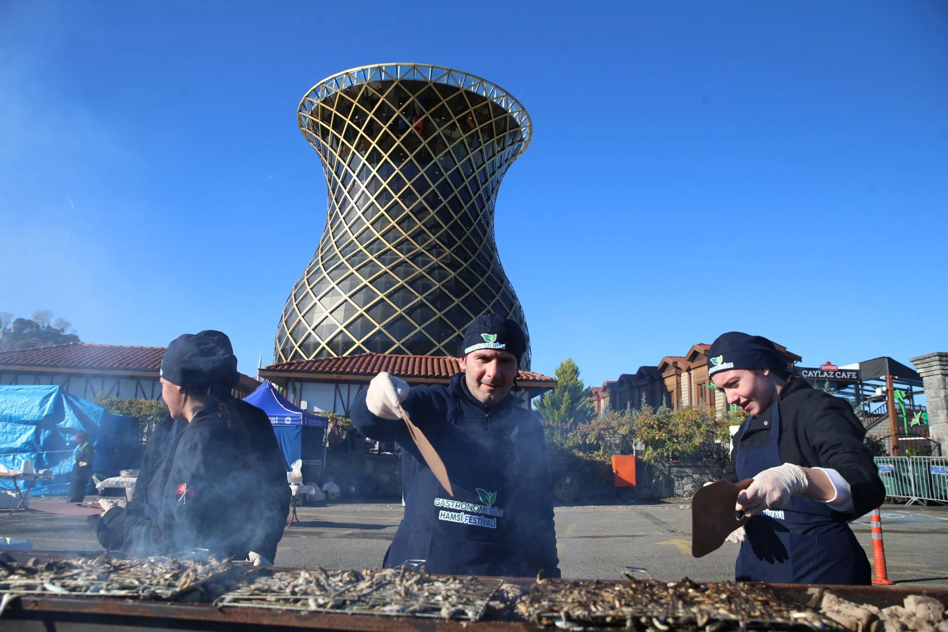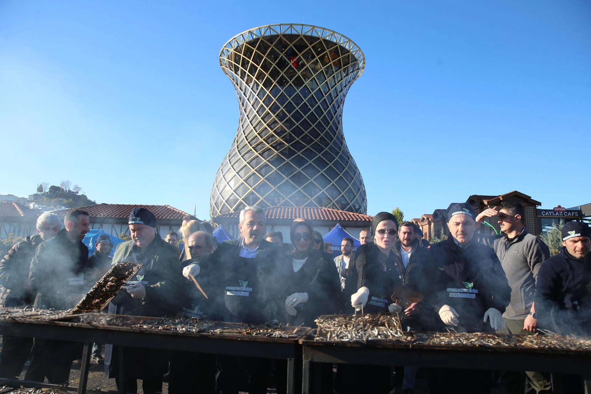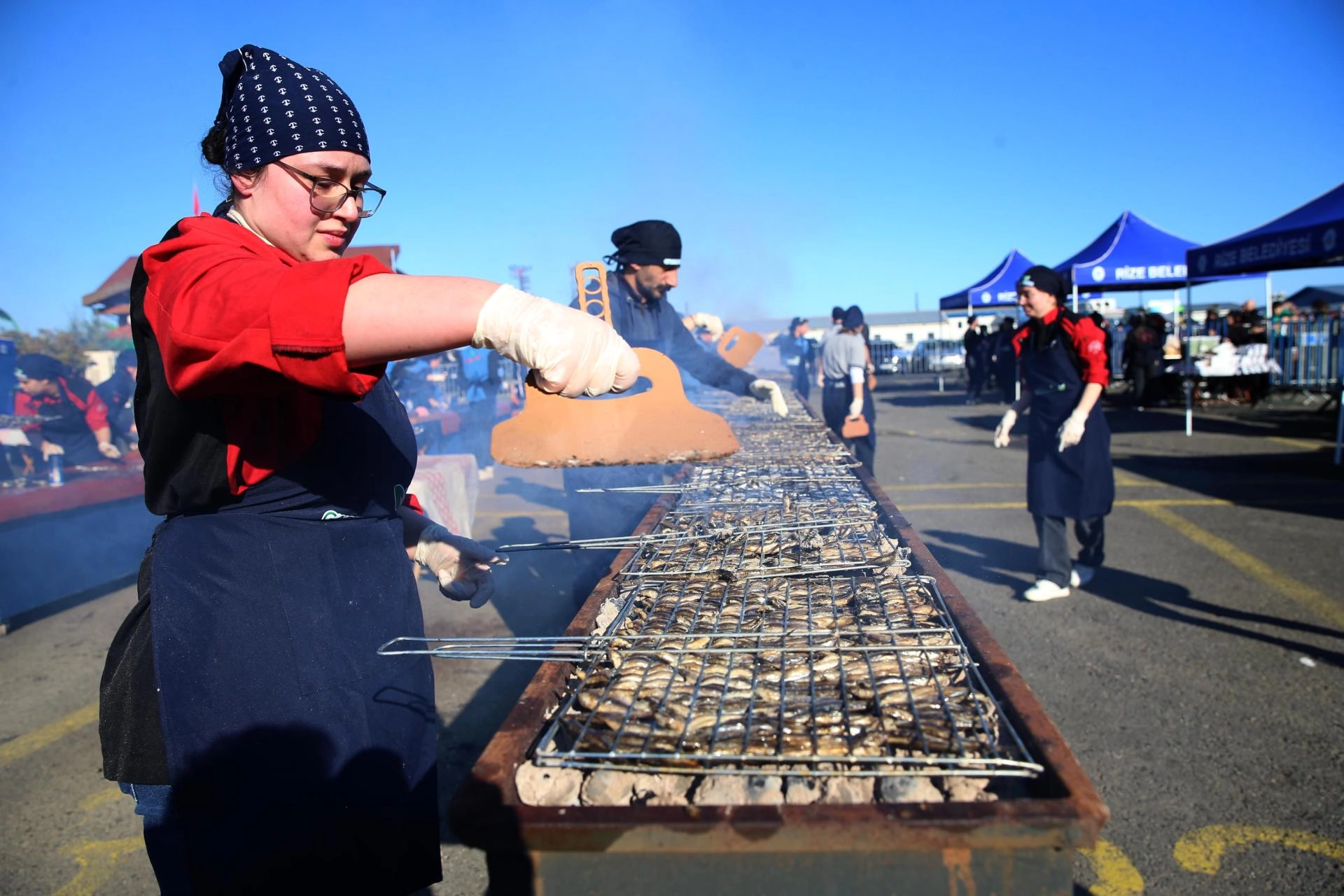Rize Belediyesince sahil dolgu alanında organize edilen festivalde, çay çöpünden üretilen mangal kömüründe pişirilen hamsiler, katılımcıların beğenisine sunuldu.