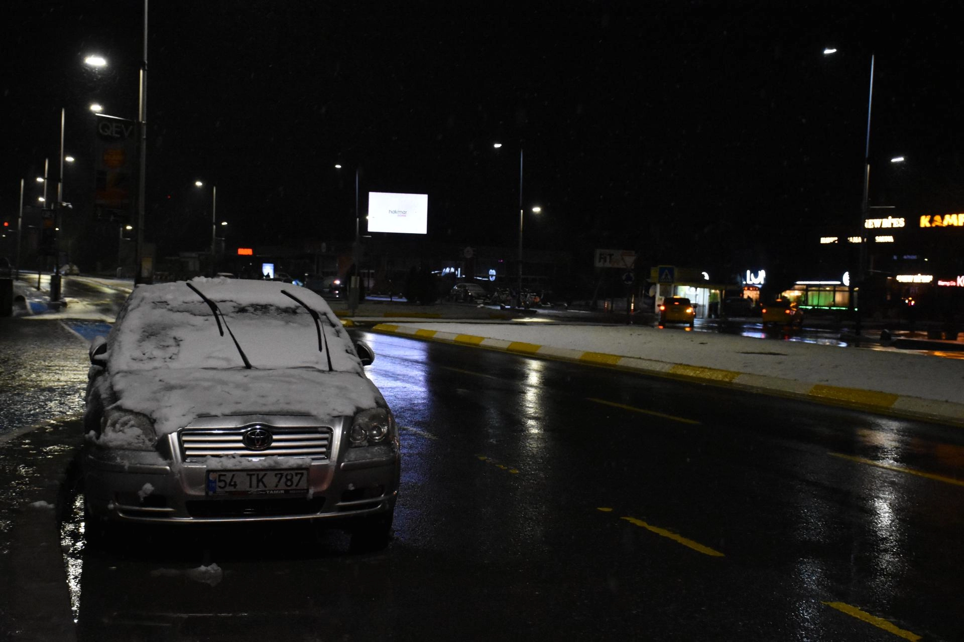 Kent merkezinde akşam saatlerinde başlayan kar yağışı, Serdivan ilçesinin yüksek kesimlerinde etkisini artırdı.