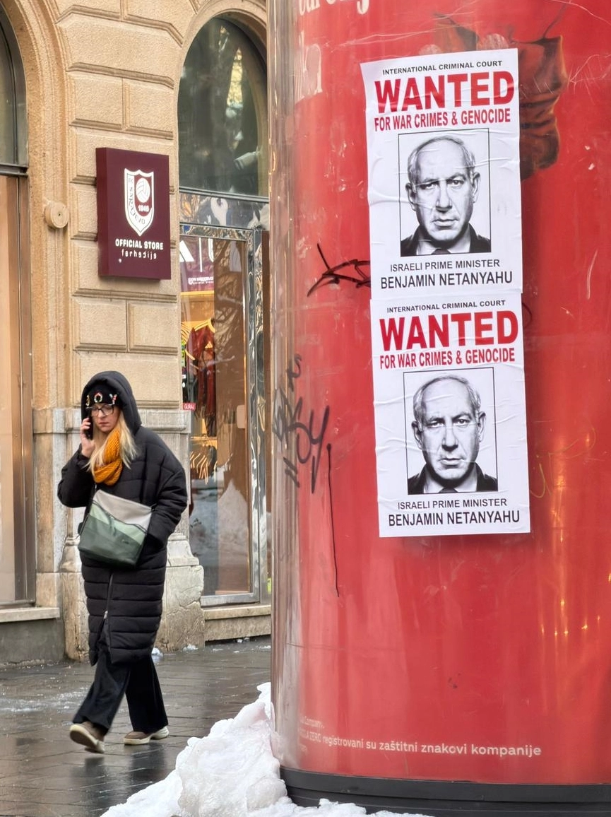 SARAYBOSNA (AA) - Bosna Hersek'in başkenti Saraybosna'da birçok yere "Binyamin Netanyahu, aranıyor, savaş suçları ve soykırımdan" afişleri asıldı.