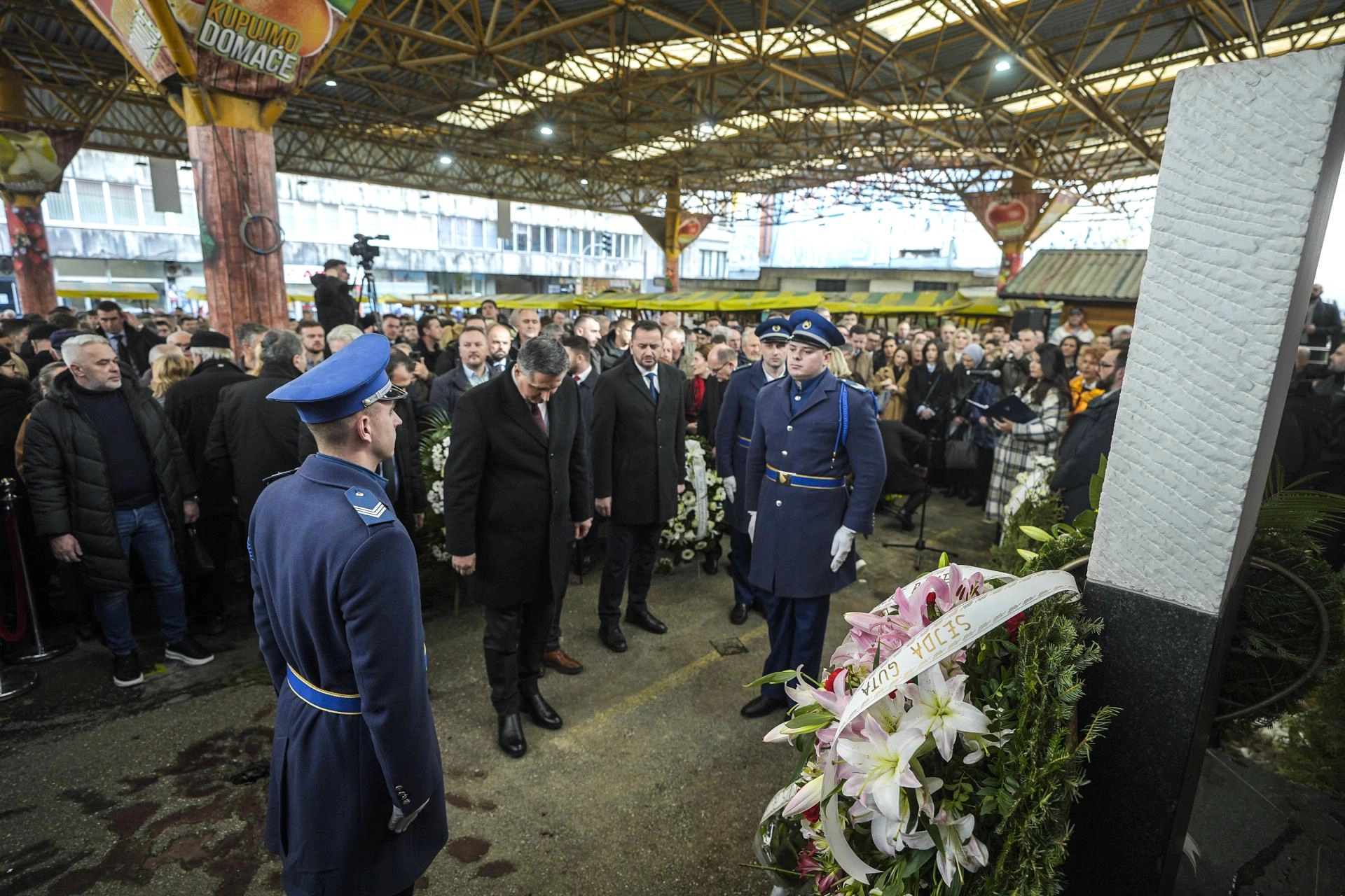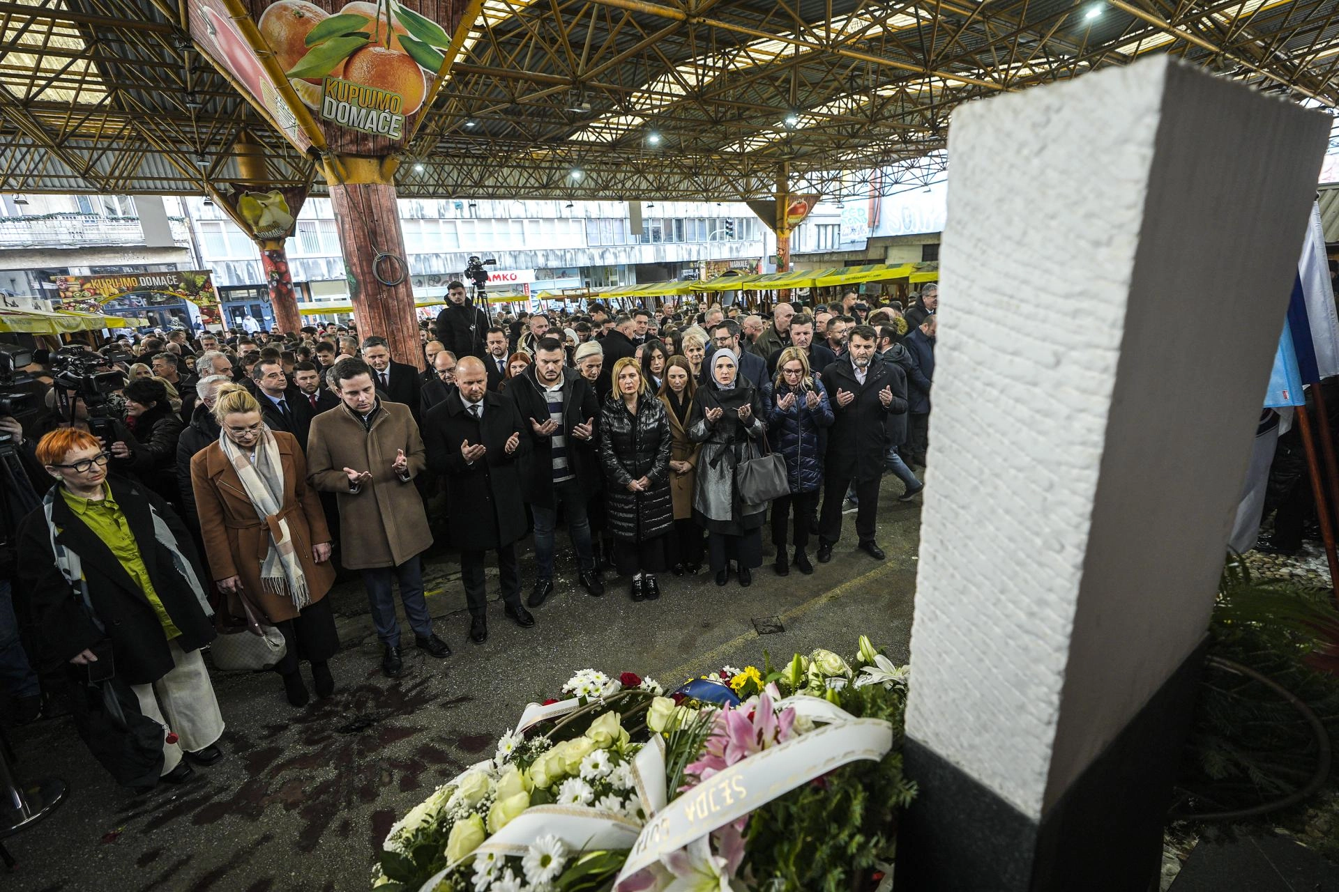 Sırp askerlerinin 5 Şubat 1994'teki saldırısının 32. yıl dönümünde Markale pazar yerinde düzenlenen törene, hayatını kaybedenlerin yakınları ve saldırıdan kurtulanların yanı sıra bakanlar, bürokratlar, büyükelçiler ile çok sayıda vatandaş katıldı.
