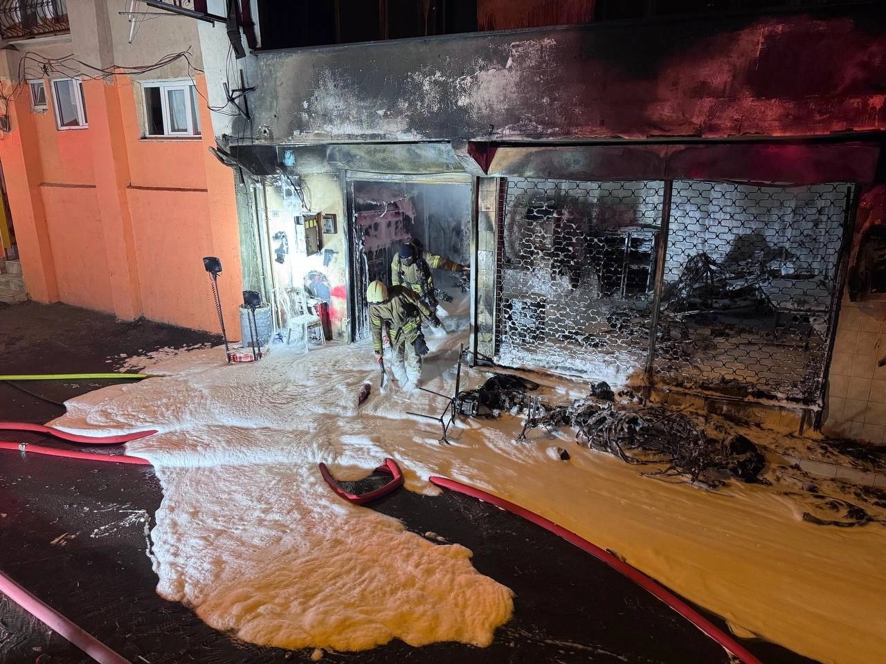 Yangında iş yeri ile içinde bulunan 3 motosiklet kullanılamaz hale geldi.