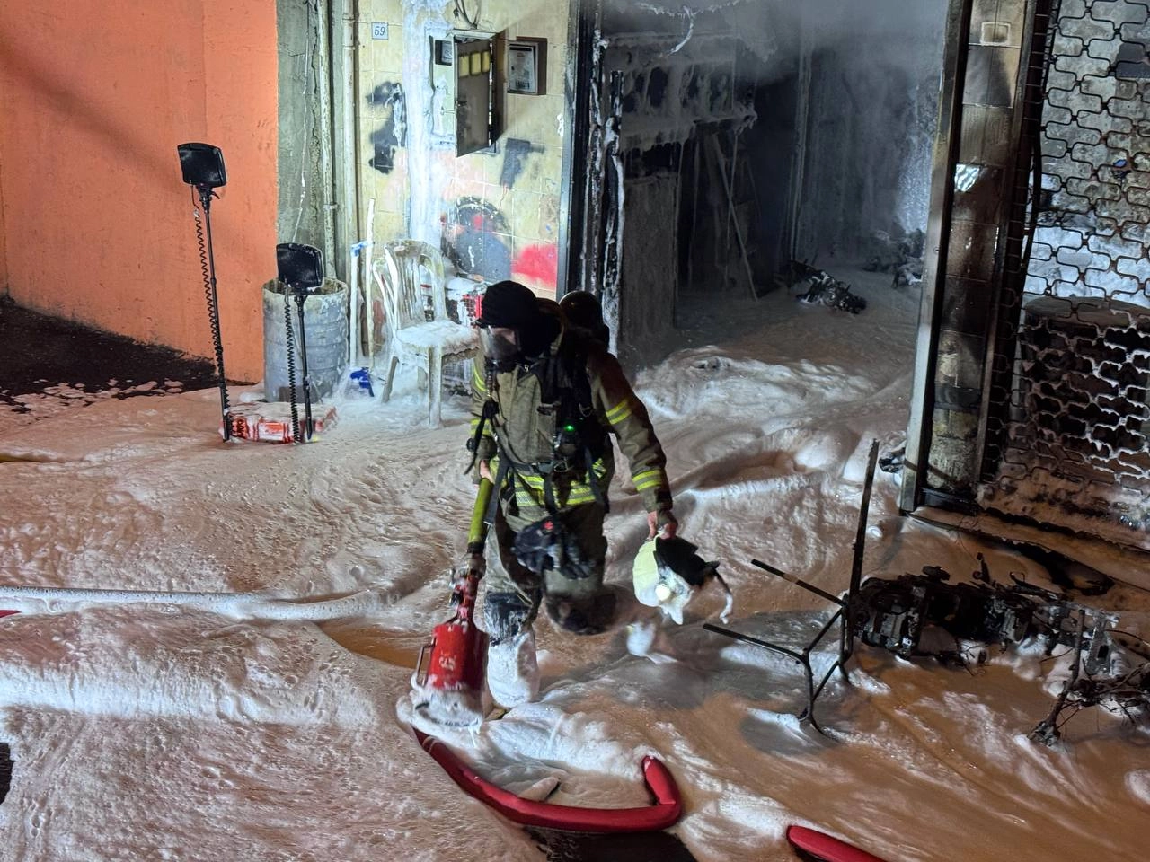Tamirhanenin yandığını gören iş yeri sahibi, kendi imkanlarıyla alevleri söndürmeye çalışırken hafif şekilde yaralandı.