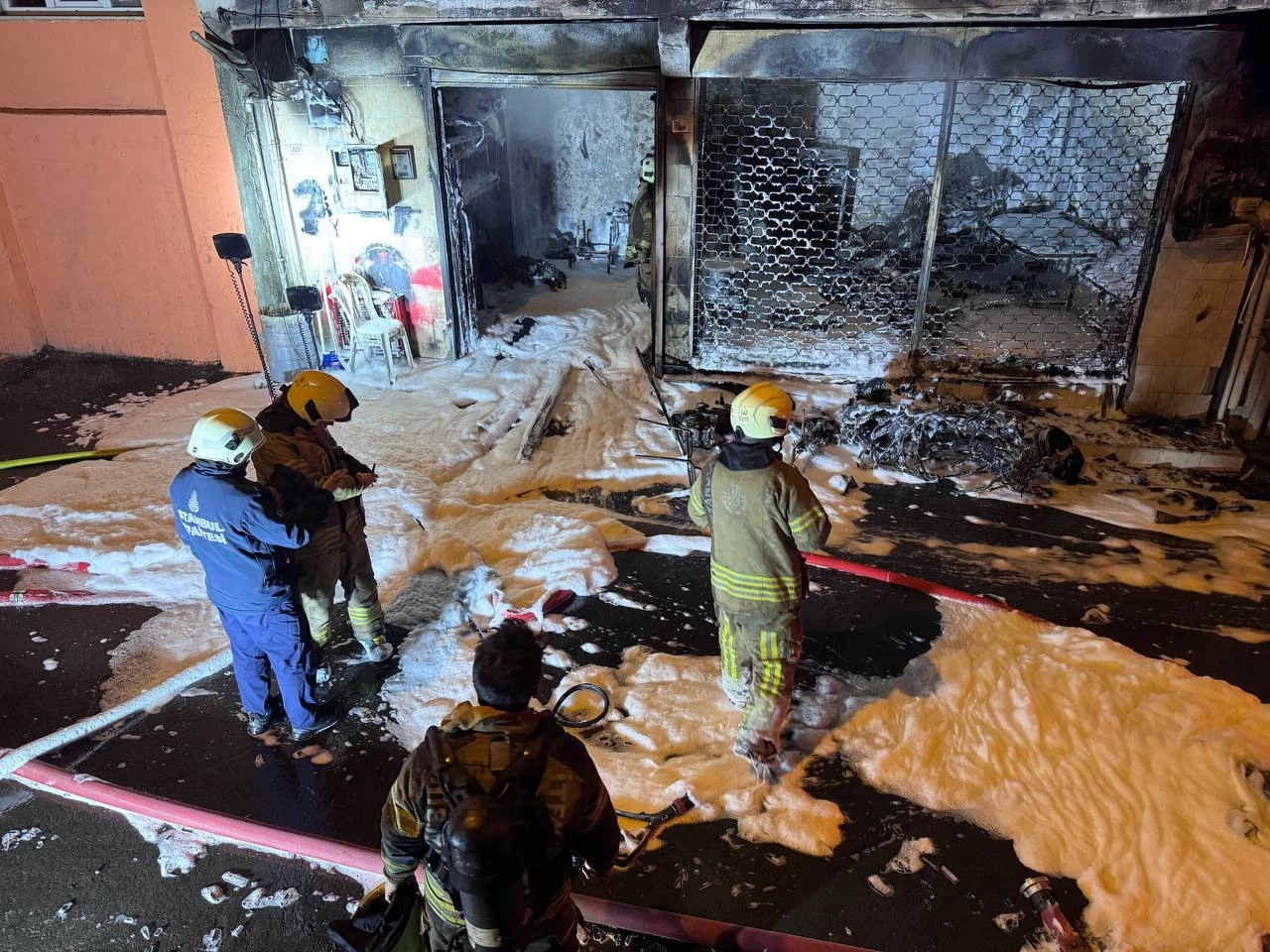 İtfaiye ekiplerinin müdahalesiyle söndürülen yangının ardından bir süre soğutma çalışması yapıldı.