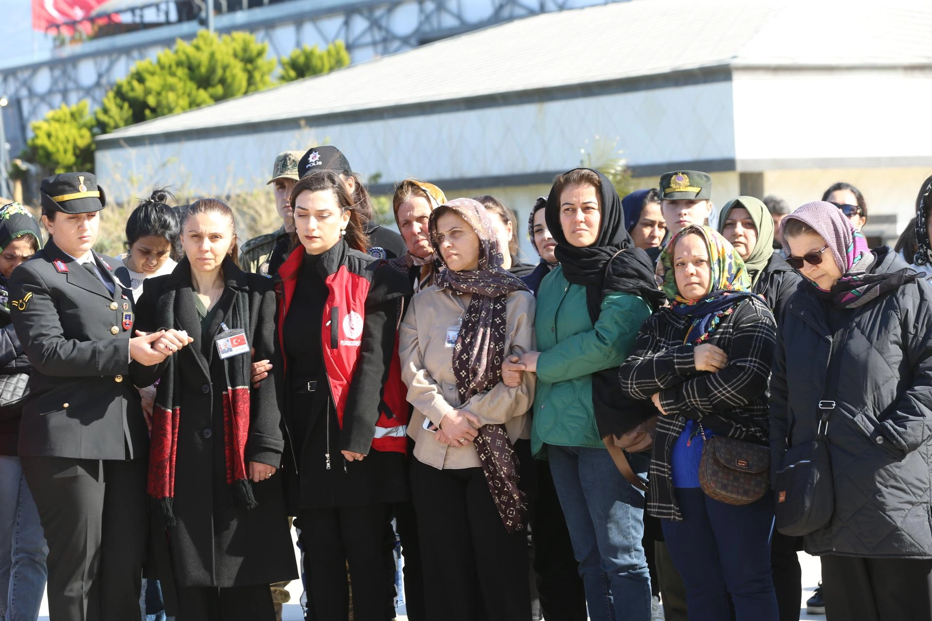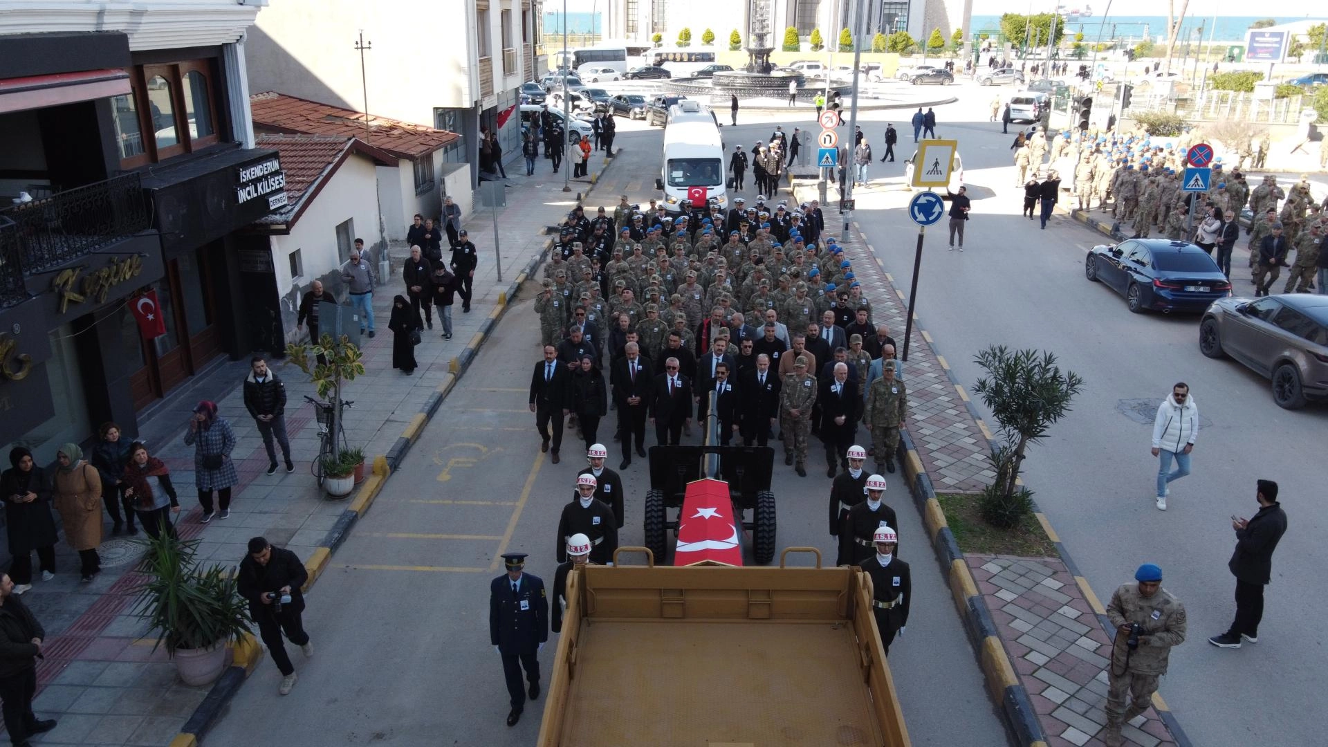 Şehit Okur'un (49) Türk bayrağına sarılı naaşı, İskenderun ilçesindeki Nihal Atakaş Camisi'ne getirildi.