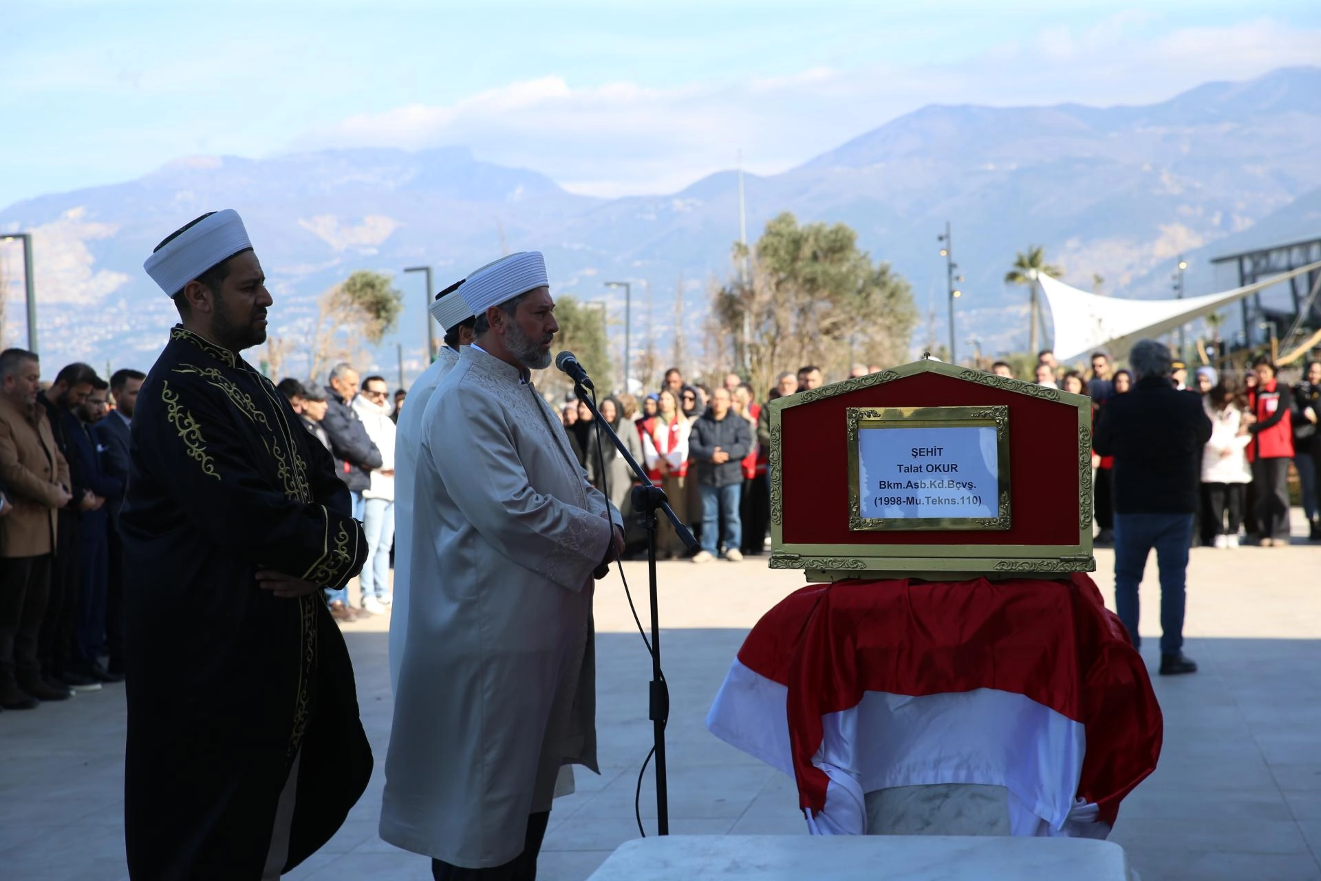Buradaki törene, şehidin eşi Esra, kızı Elçin, annesi Emine Okur ve yakınlarıyla, Vali Mustafa Masatlı, Gençlik ve Spor Bakan Yardımcısı Enes Eminoğlu, AK Parti Hatay Milletvekili Abdulkadir Özel, Büyükşehir Belediye Başkanı Mehmet Öntürk, İl Jandarma Komutanı Tuğgeneral İlker Şimşek, İskenderun Kaymakamı Muhammet Önder, İskenderun Belediye Başkanı Mehmet Dönmez ile diğer ilgililer katıldı.