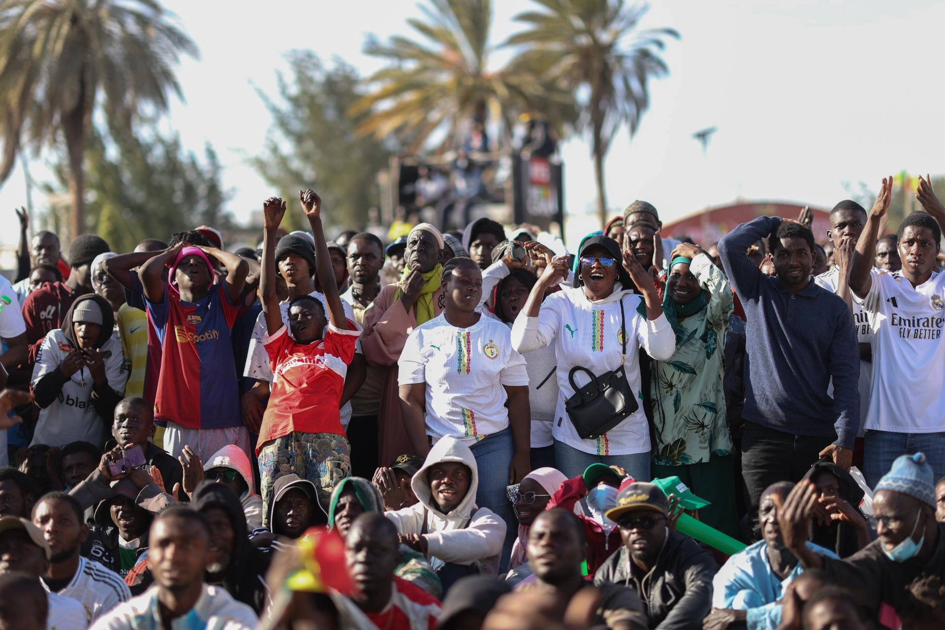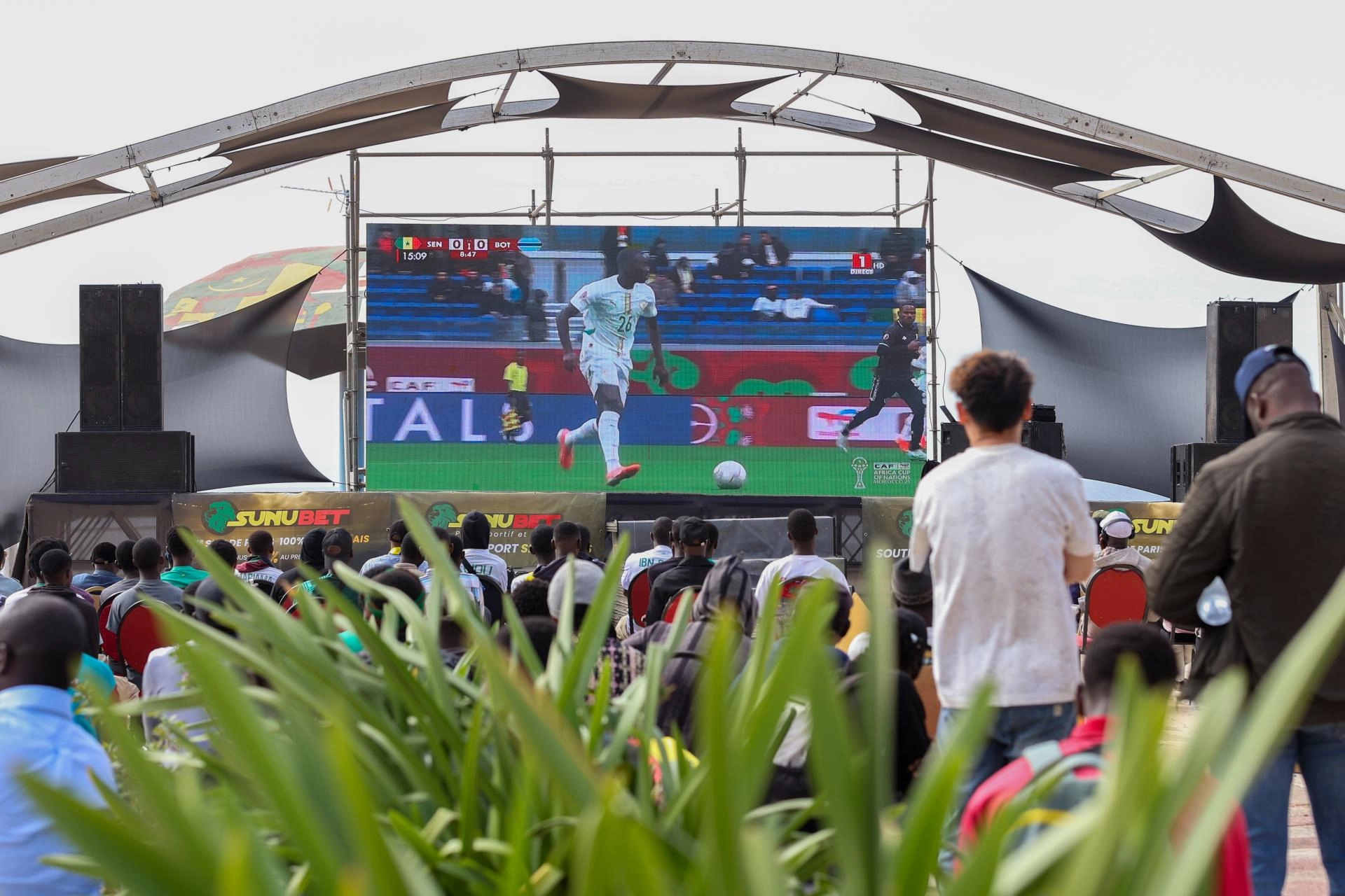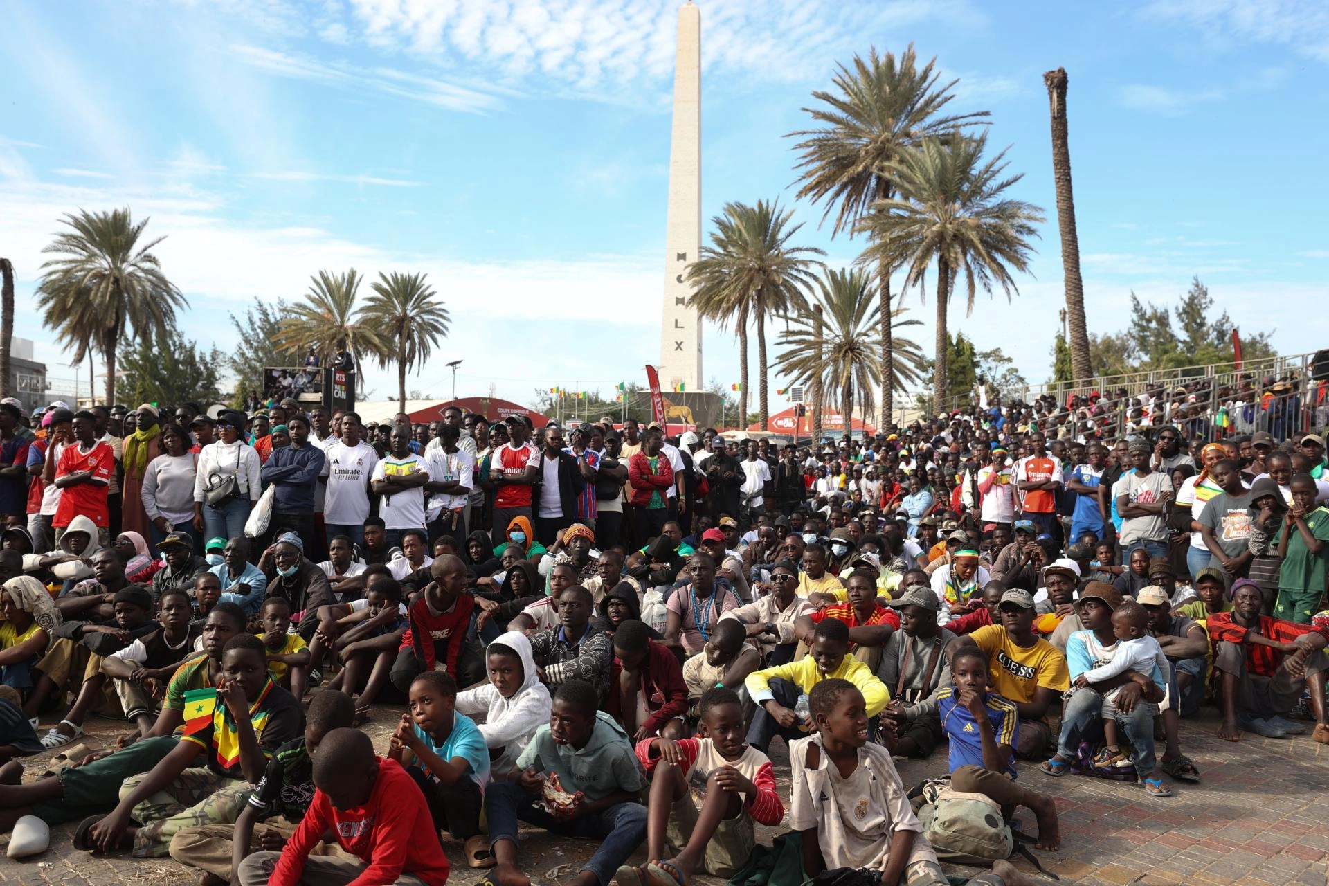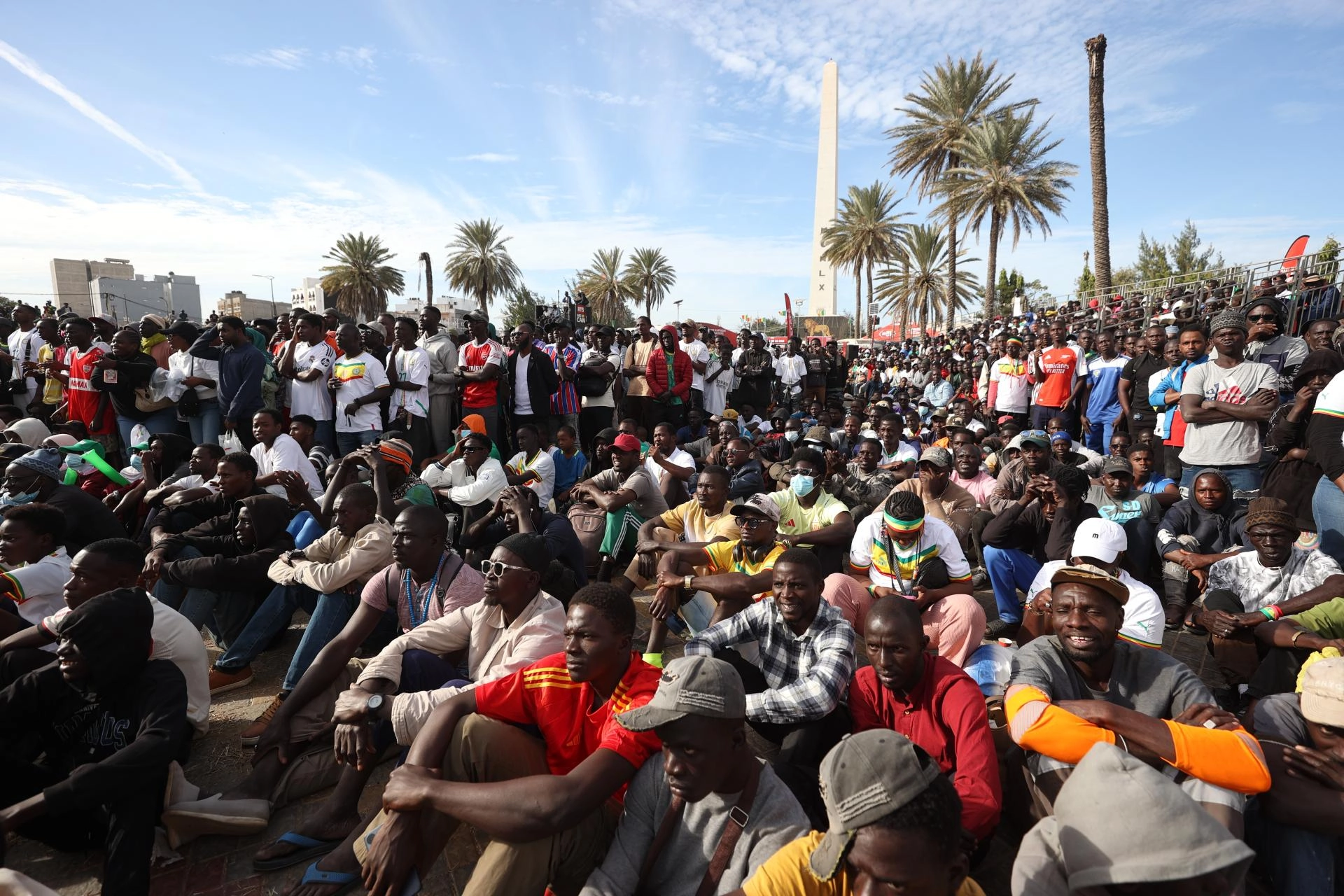 Senegalliler, Senegal-Botsvana maçını, Dakar'ın sembollerinden Obelisque Meydanı'nda kurulan dev ekrandan izledi.