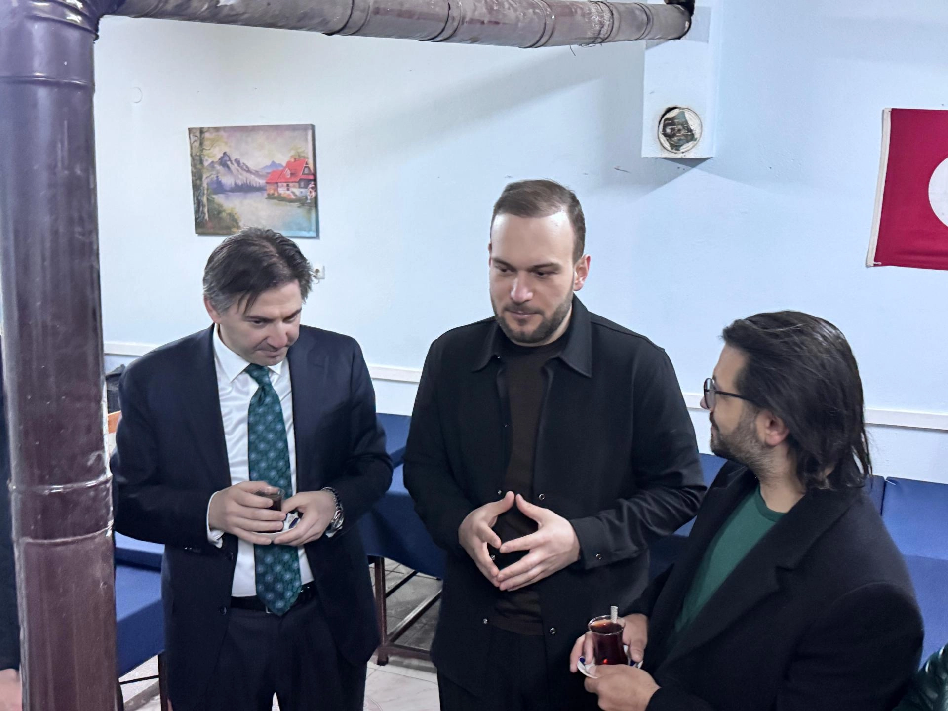 Ardından köy meydanında bir kahvehaneye geçen protokol üyeleri burada vatandaşlar ve basın mensuplarıyla sohbet etti.
