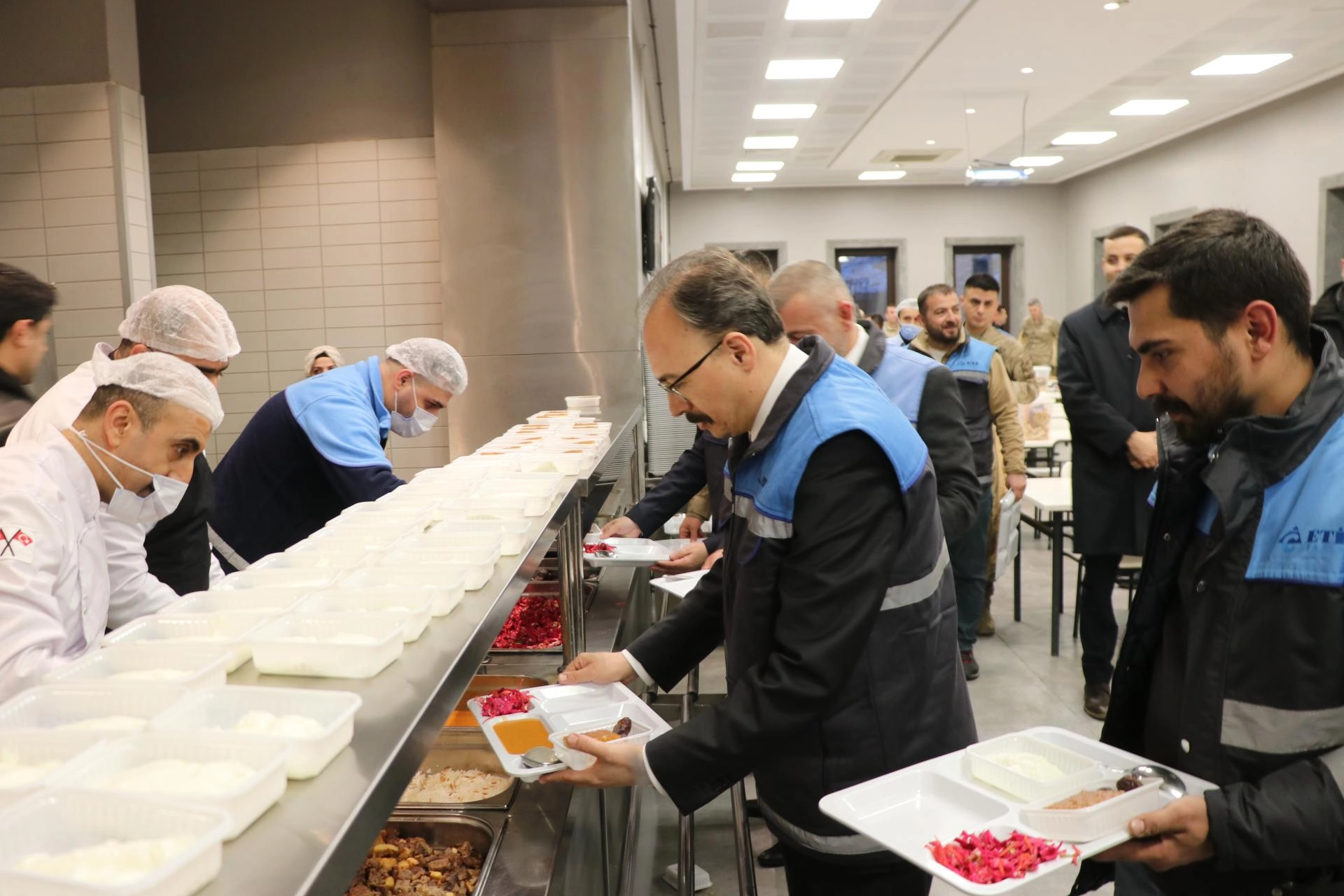 İşçilerin ramazan ayını tebrik eden ve iftar saatinde yemekhanede sıraya girerek yemeğini alan Kızılkaya, daha sonra işçilerle iftar yaptı.