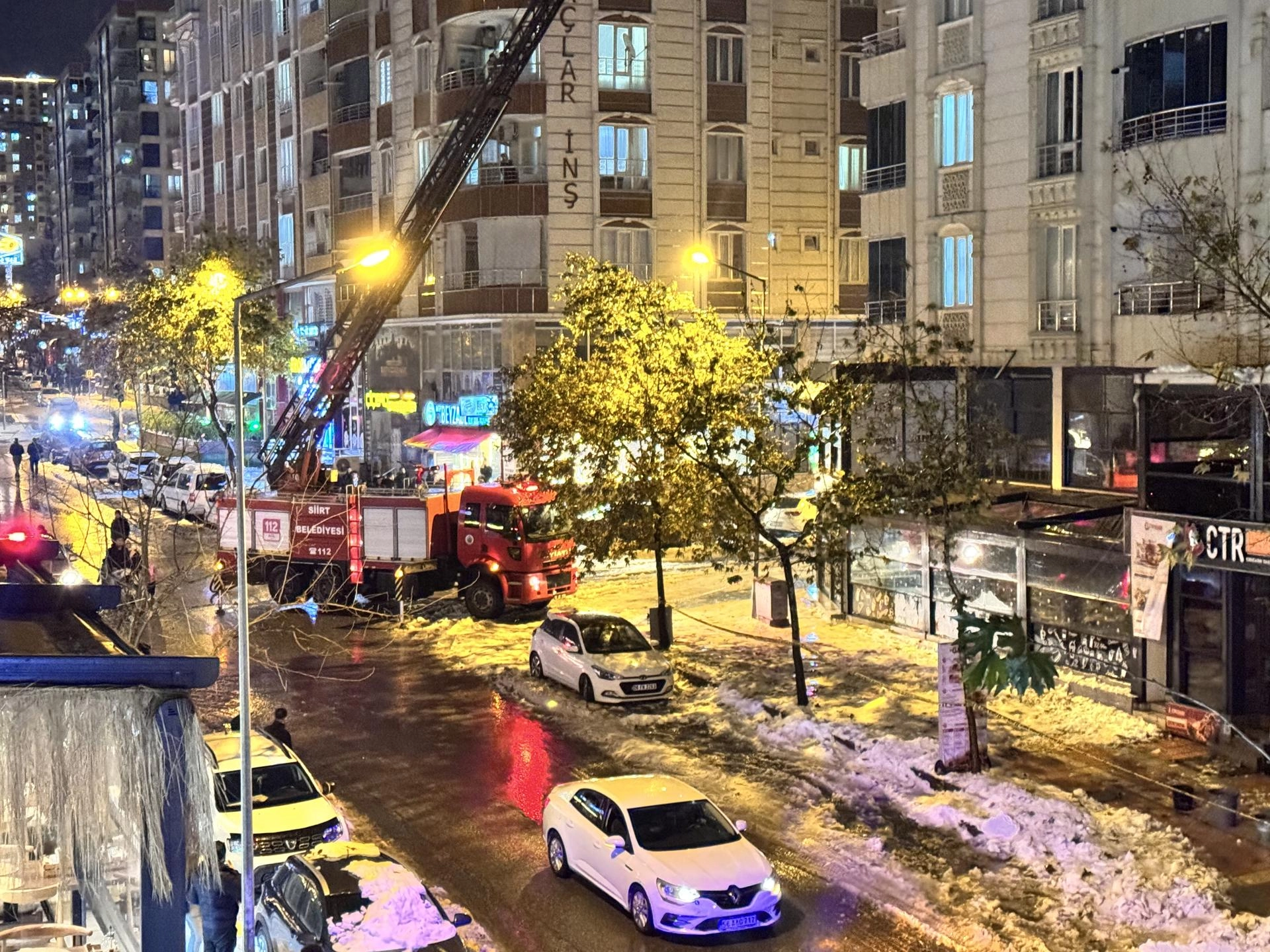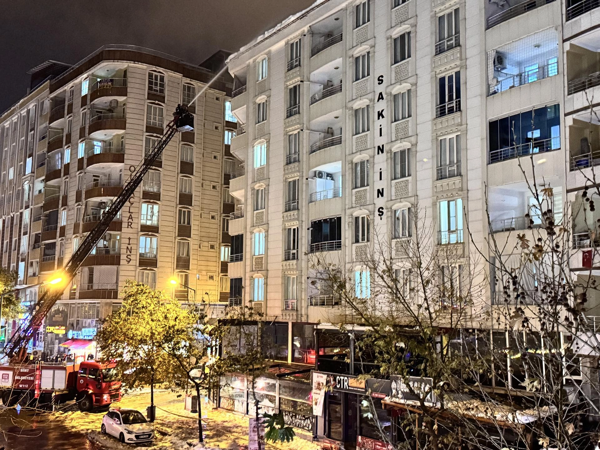İtfaiye ekipleri, çatıdaki kar kütlelerini tazyikli suyla temizledi.