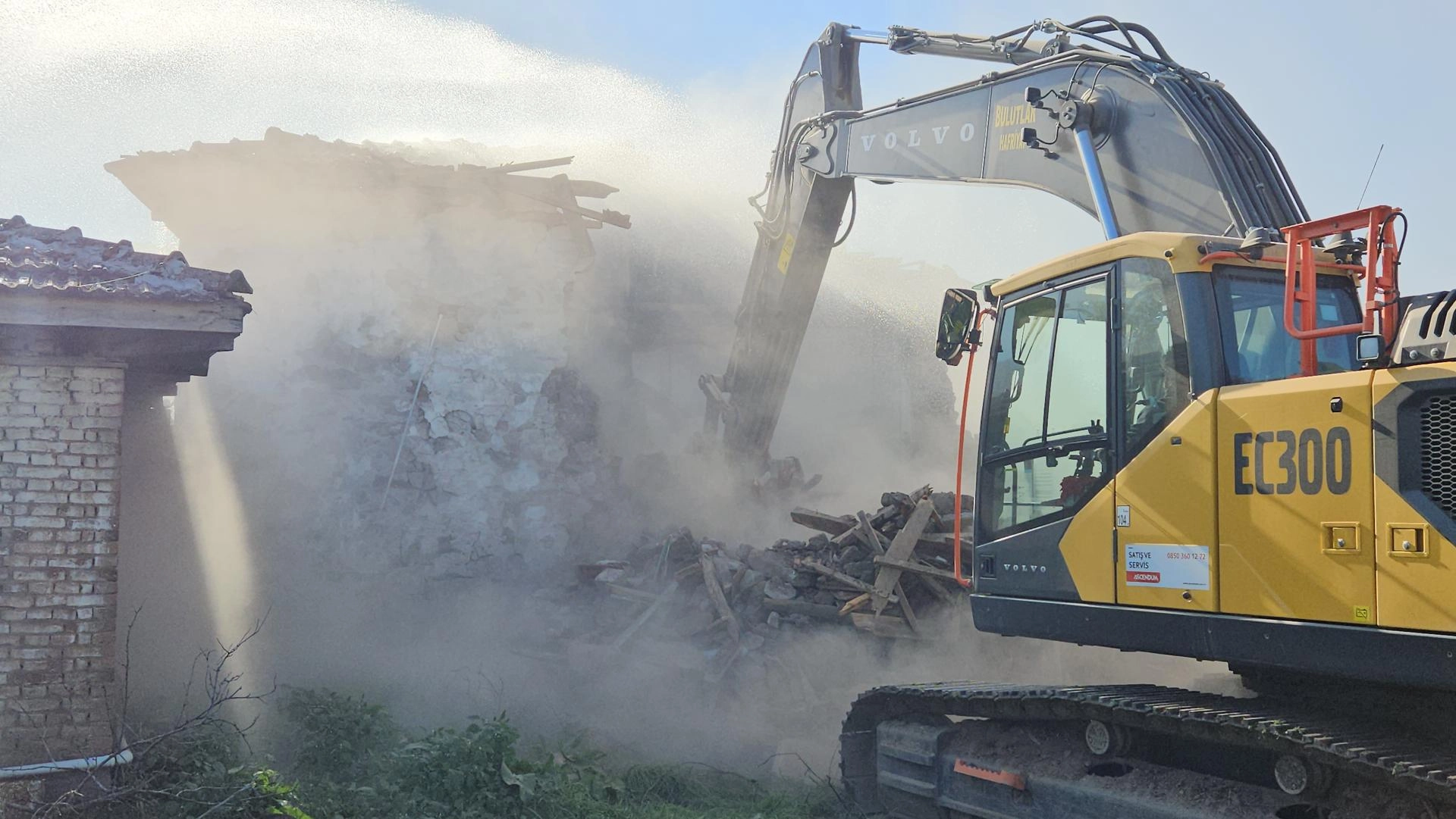 Ekipler, süreci tamamlanan binalarda kontrollü yıkım gerçekleştiriyor.