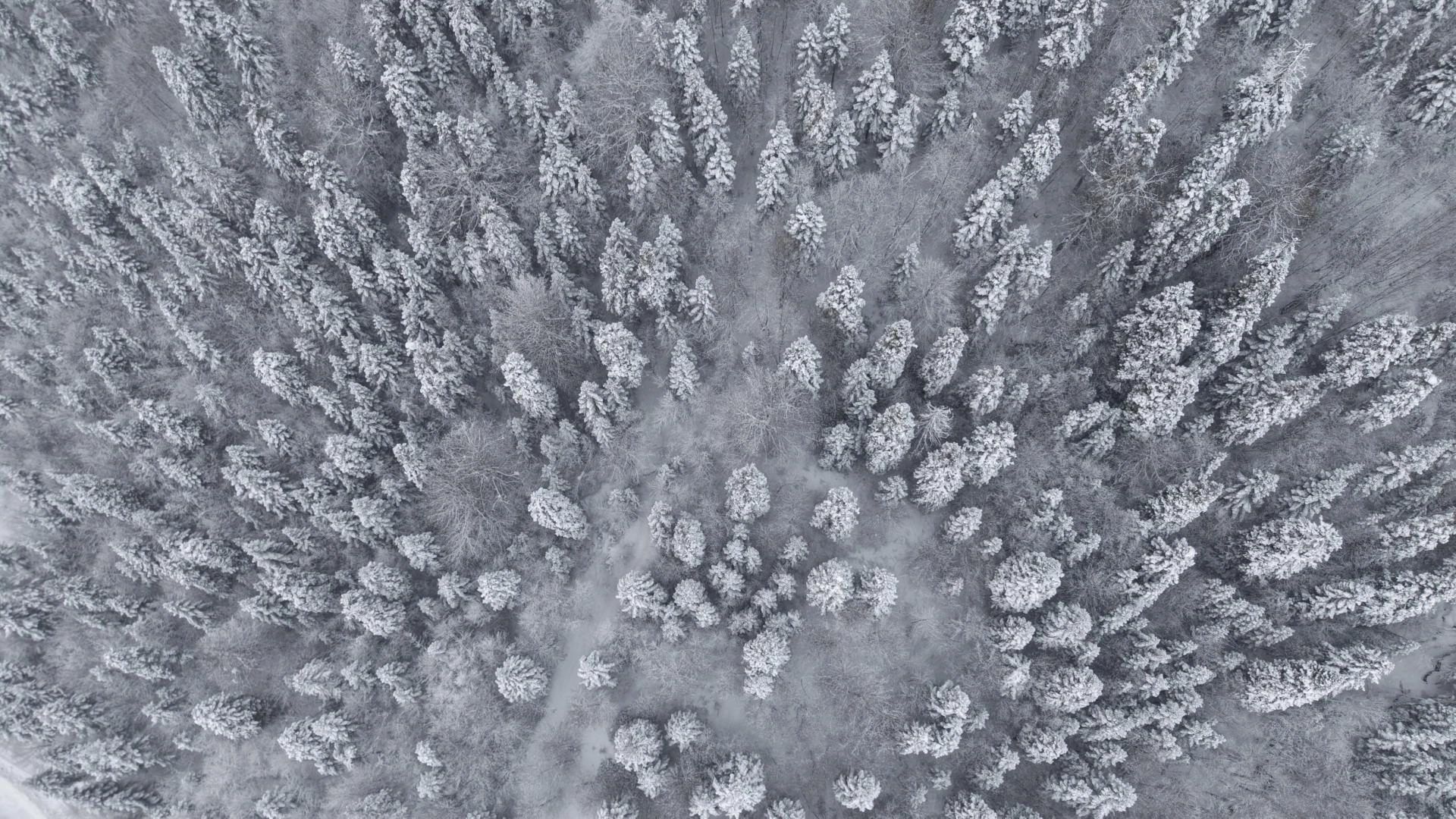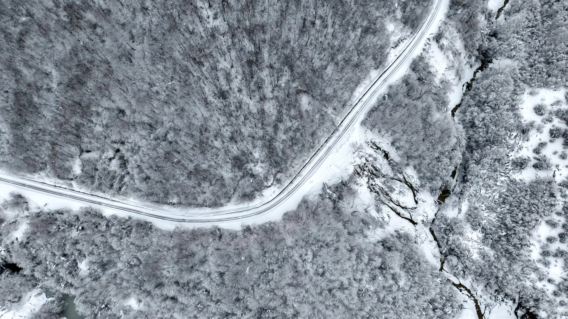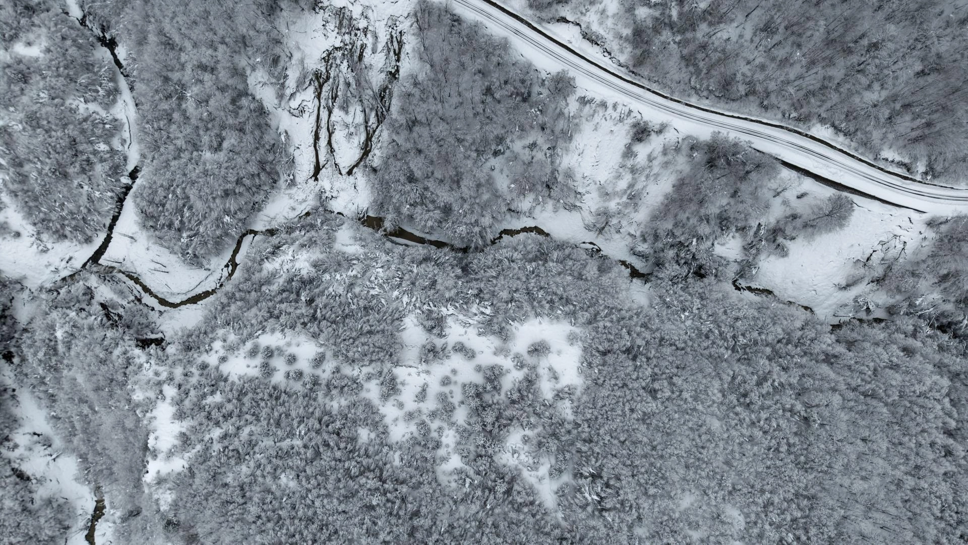 Kar yağışının ardından seyrine doyumsuz manzaranın oluştuğu ormanlar, dronla görüntülendi.