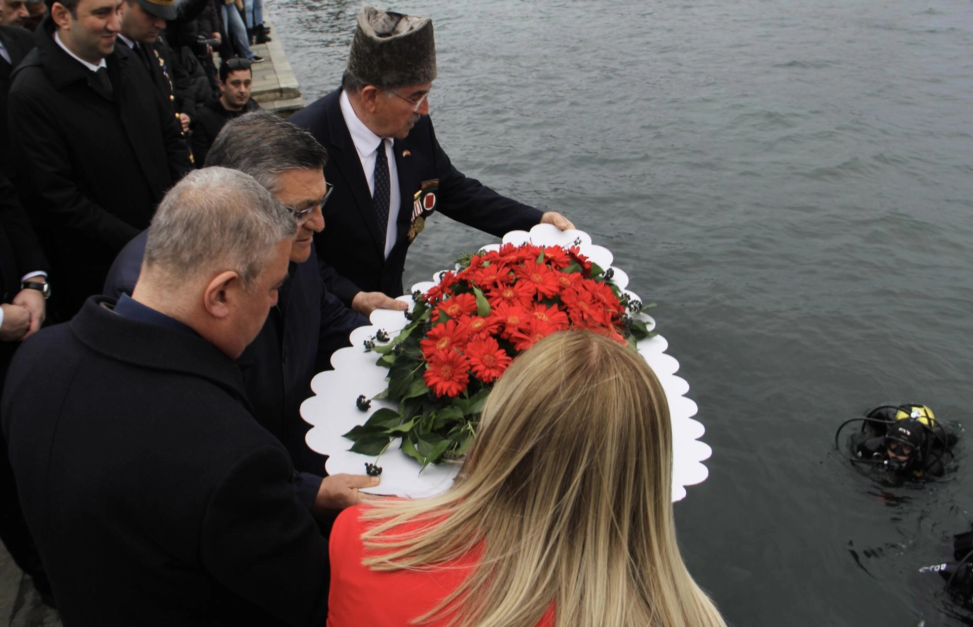 Buradaki törenin ardından İskele Meydanı'nda gerçekleştirilen programda Vali Özarslan ve beraberindekiler şehitler anısına denize çelenk bıraktı.