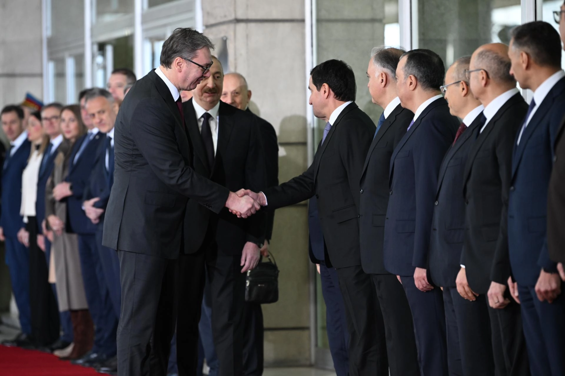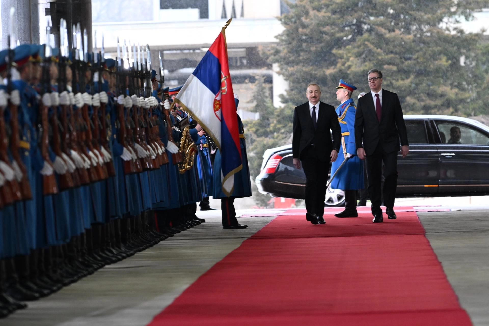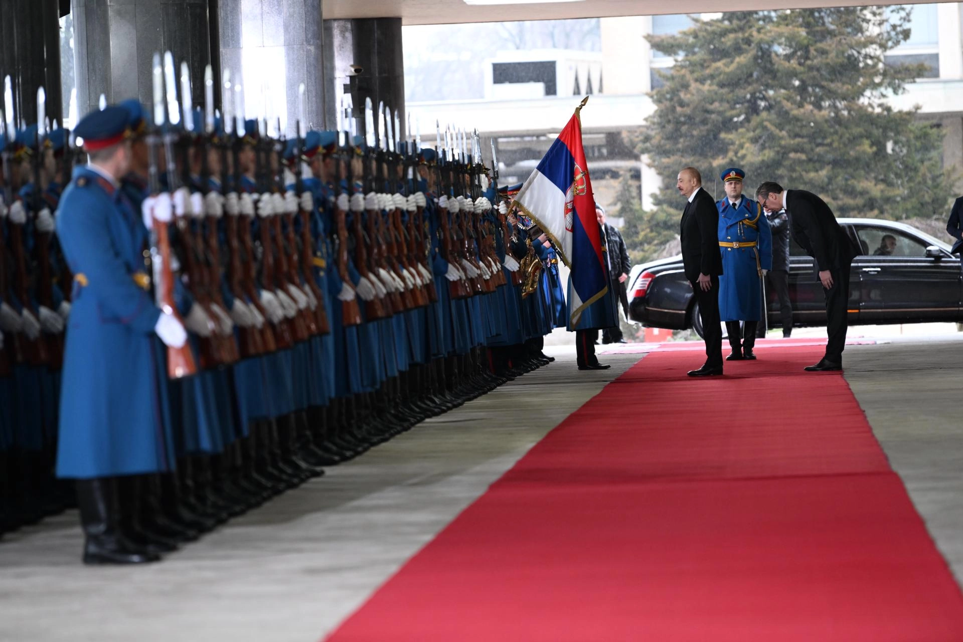Vucic, resmi temaslarda bulunmak üzere Sırbistan'ın başkenti Belgrad'a gelen Azerbaycan Cumhurbaşkanı İlham Aliyev'i, Sırbistan Sarayı'nda resmi törenle karşıladı.