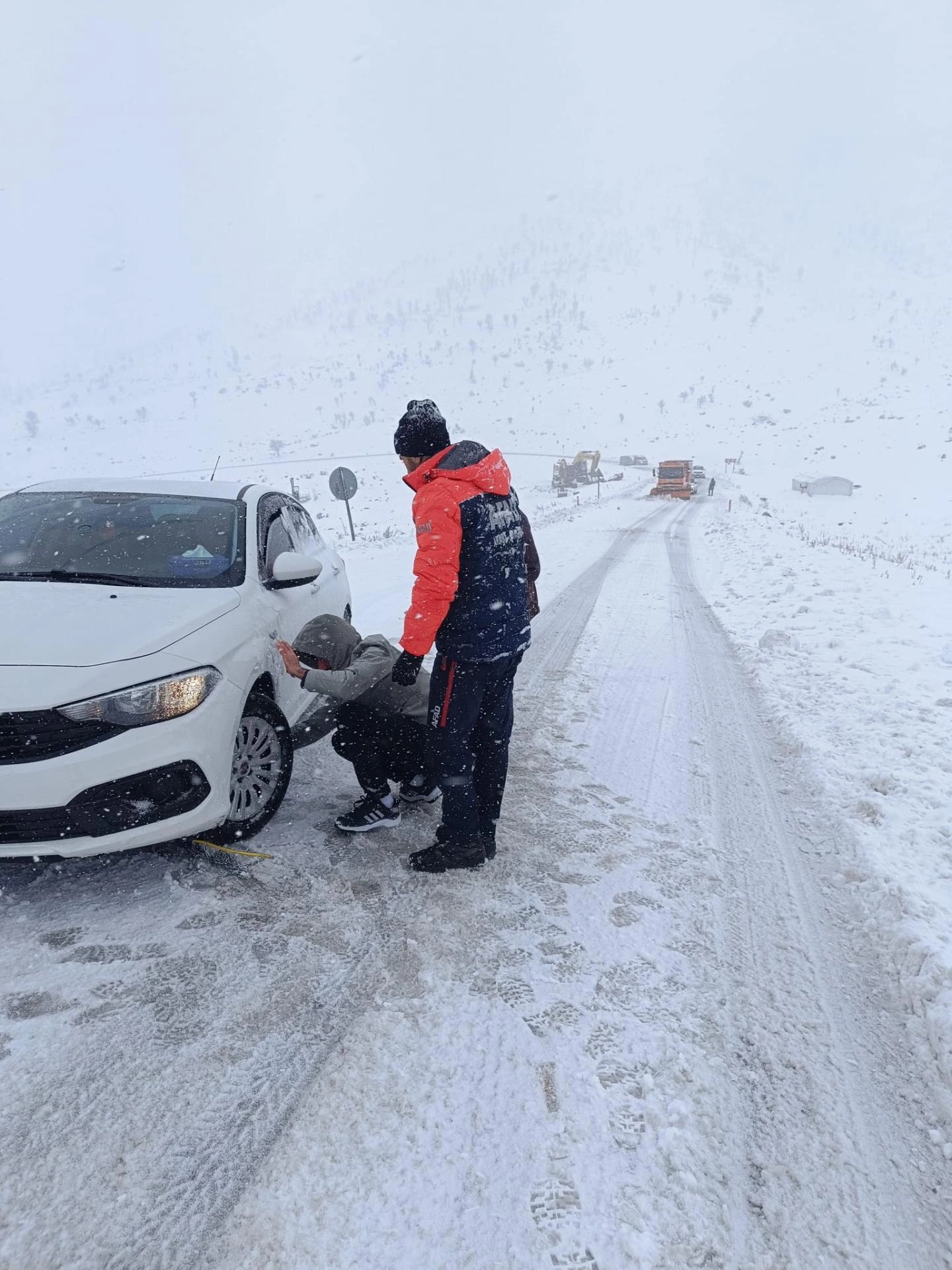 ŞIRNAK (AA) - Şırnak'ta etkili olan kar yağışı nedeniyle yolda mahsur kalanlar ekiplerin çalışmasıyla kurtarıldı.