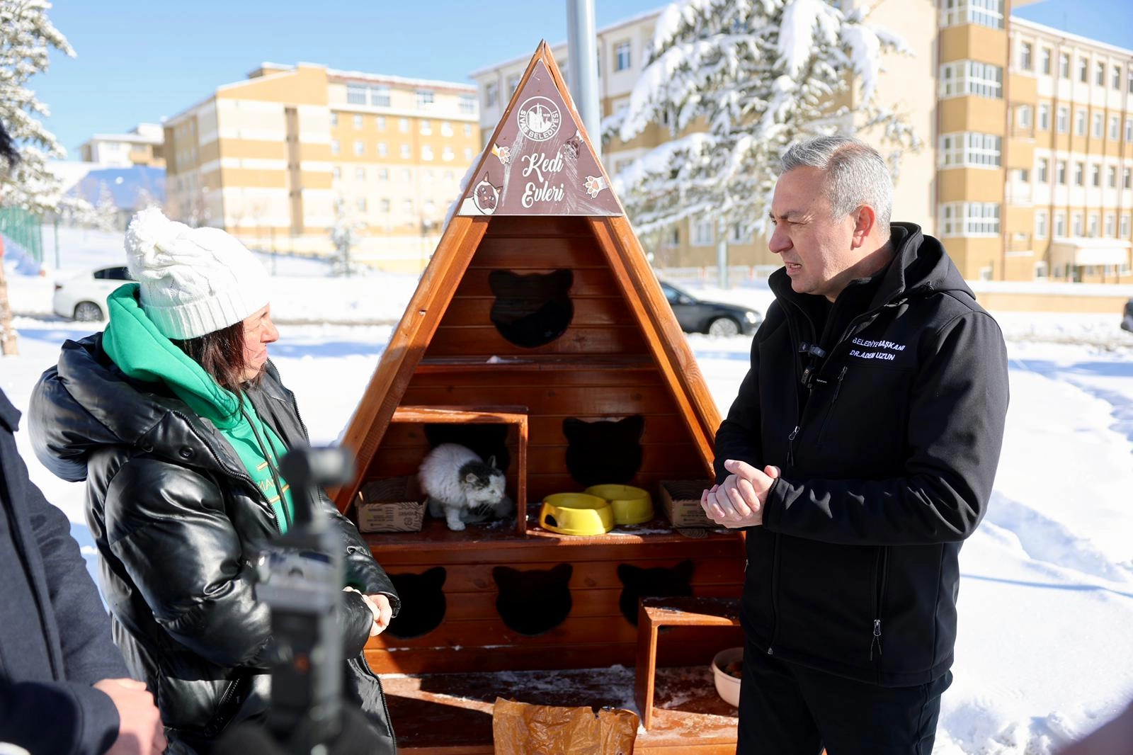 "Kış şartları Sivas'ta zor geçiyor, biz de Sivas Belediyesi olarak can dostlarımızın yanındayız. Arkadaşlarımız bir yandan yeni kedi evlerinin kurulumunu gerçekleştirirken diğer yandan da eskilerin bakım, onarımını yaparak mamalarını koyuyor. Sessiz dostlarımız için her türlü desteği sağlamaya devam ediyoruz. Tüm ekip arkadaşlarımıza ve hayvansever vatandaşlarımıza teşekkür ediyorum. Şu an 50 santimin üzerinde kar var, eksi 19'lara varan soğuk hava hakim. Kedilerimiz bu kedi evlerinde gayet mutlu ve huzurlu, aynı zamanda sağlıklı bir şekilde besleniyor. Bizler de bunun gururunu yaşıyoruz."