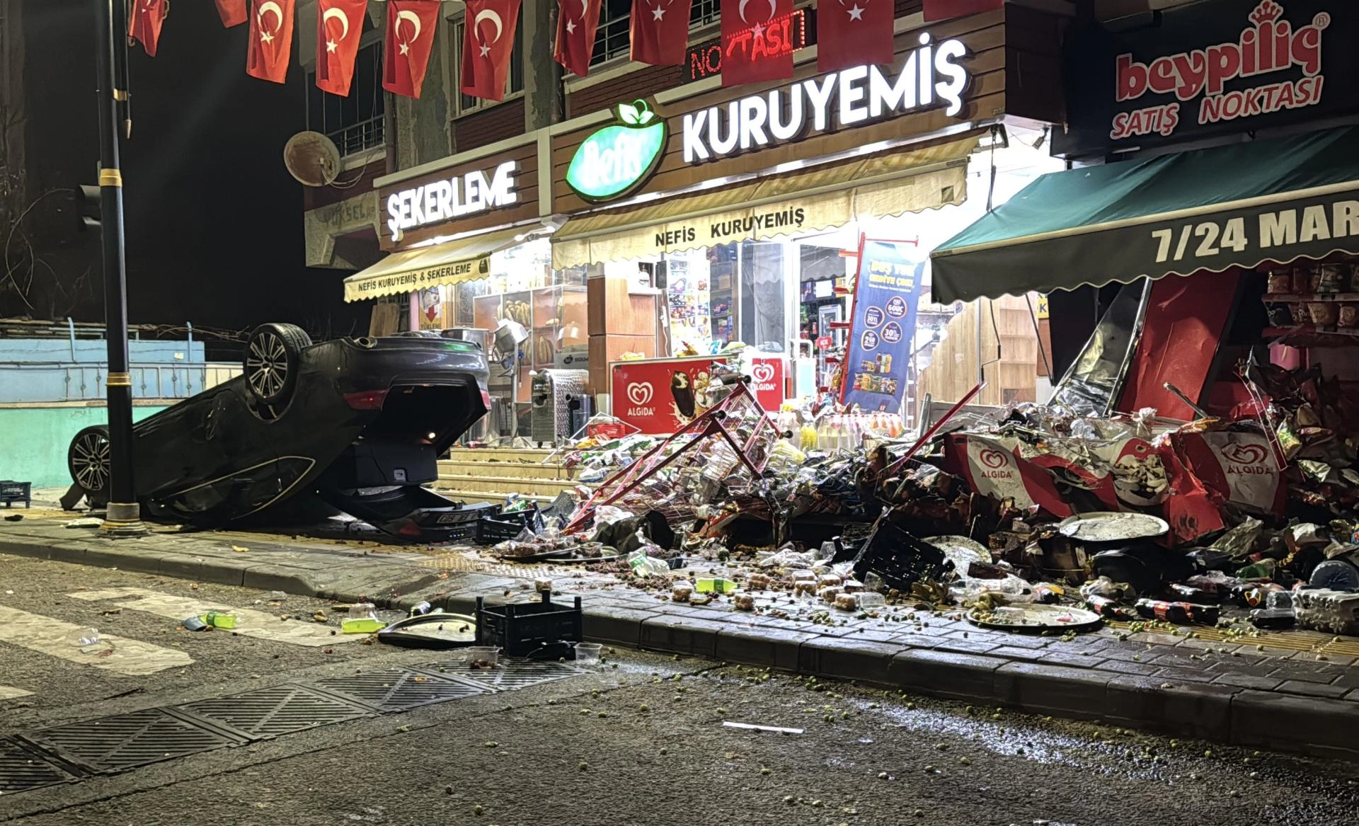 Y.E.D. yönetimindeki 58 ER 603 plakalı otomobil, sürücüsünün direksiyon hakimiyetini kaybetmesi sonucu Yenimahalle Hayri Sığırcı Caddesi'nde yol kenarındaki market ve kuruyemiş dükkanına çarptıktan sonra kaldırıma devrildi.