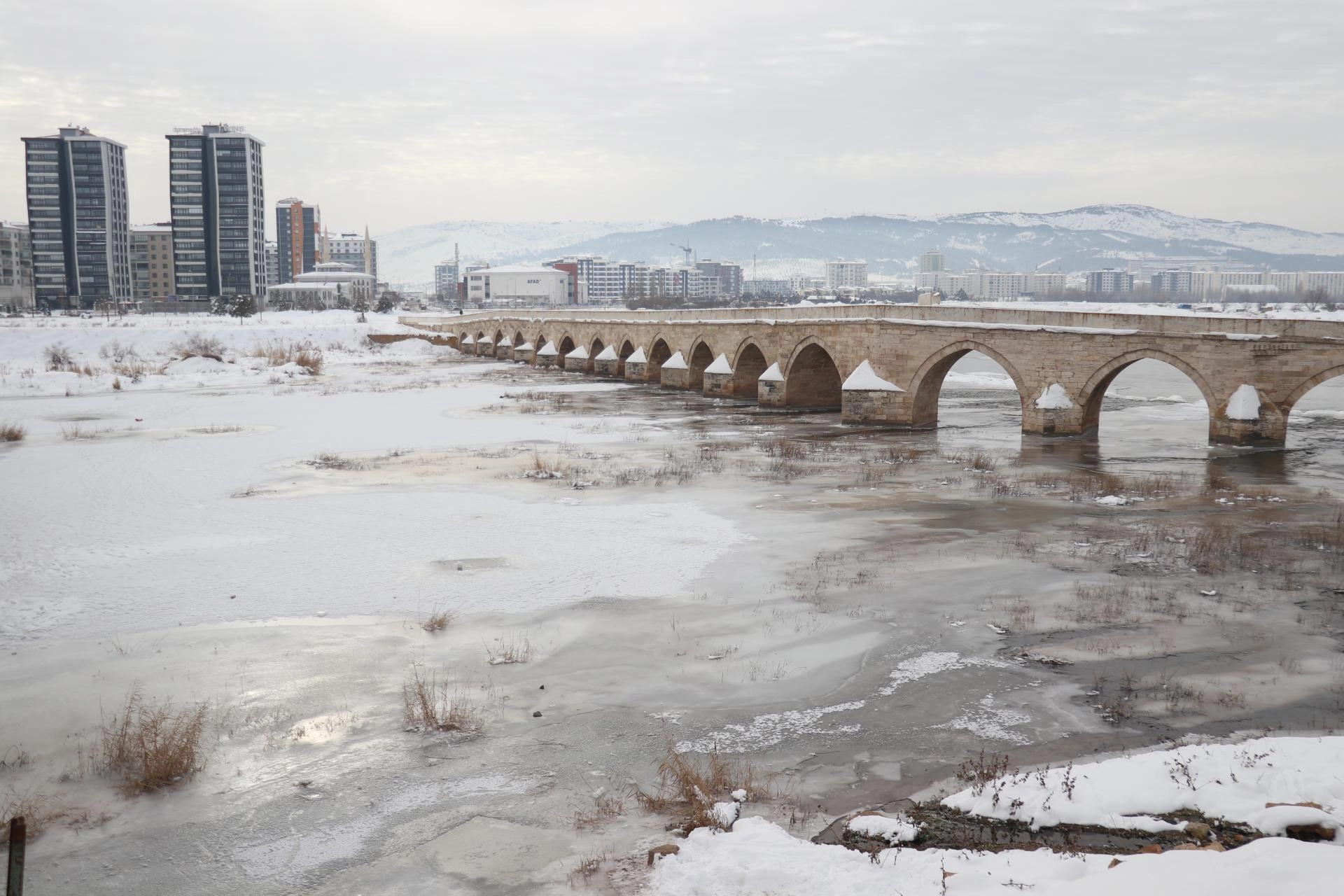 Sivas'ın İmranlı ilçesindeki Kızıldağ'ın güney yamaçlarından doğup Bafra Burnu'ndan Karadeniz'e dökülen Türkiye'nin en uzun nehri Kızılırmak'ın Eğri Köprü ve Karşıyaka mevkilerindeki bölümleri buzla kaplandı.