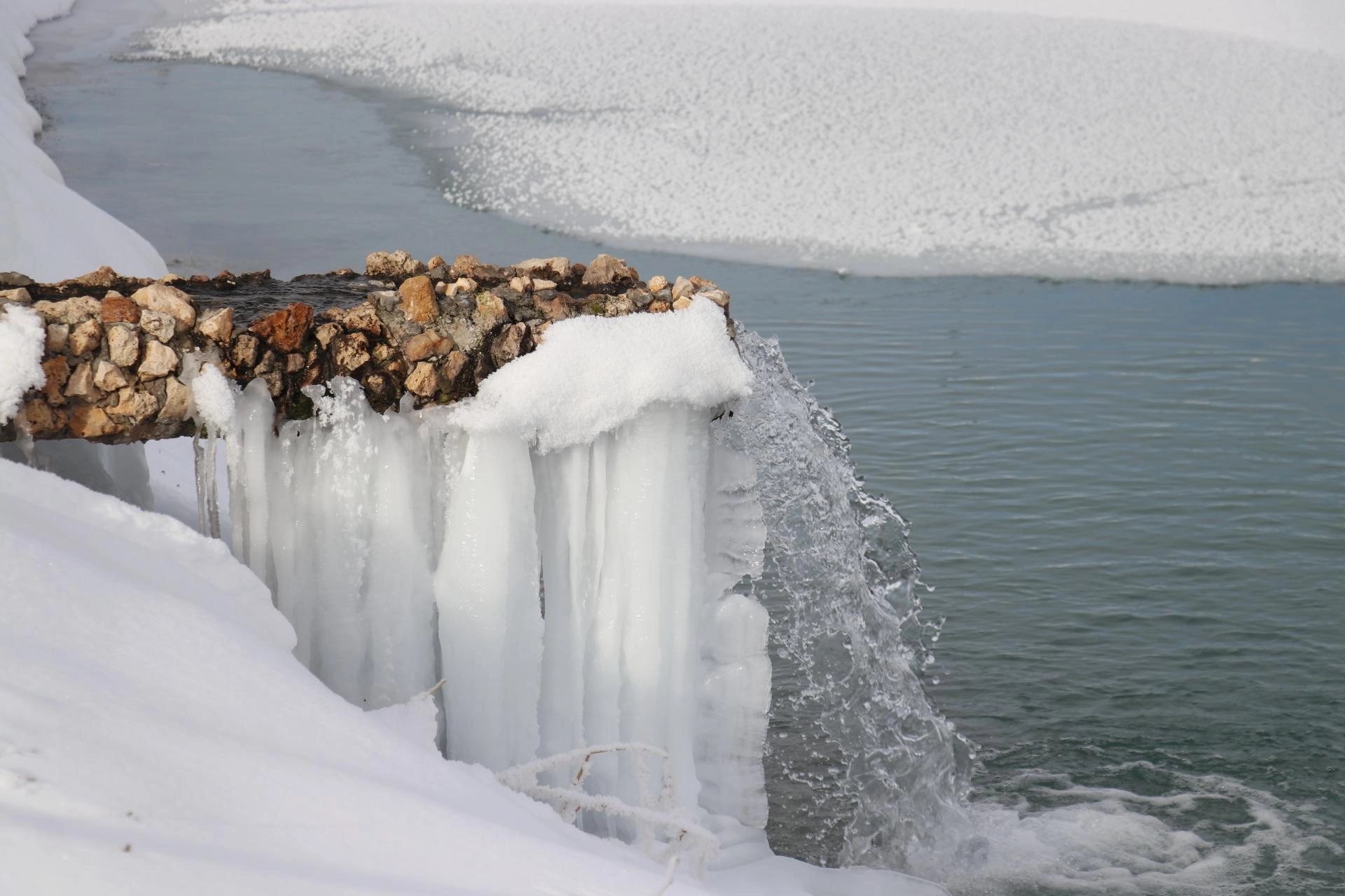Karşıyaka Mahallesi'nde bulunan Serpincik Göleti ise soğuk hava nedeniyle tamamen buz tuttu.