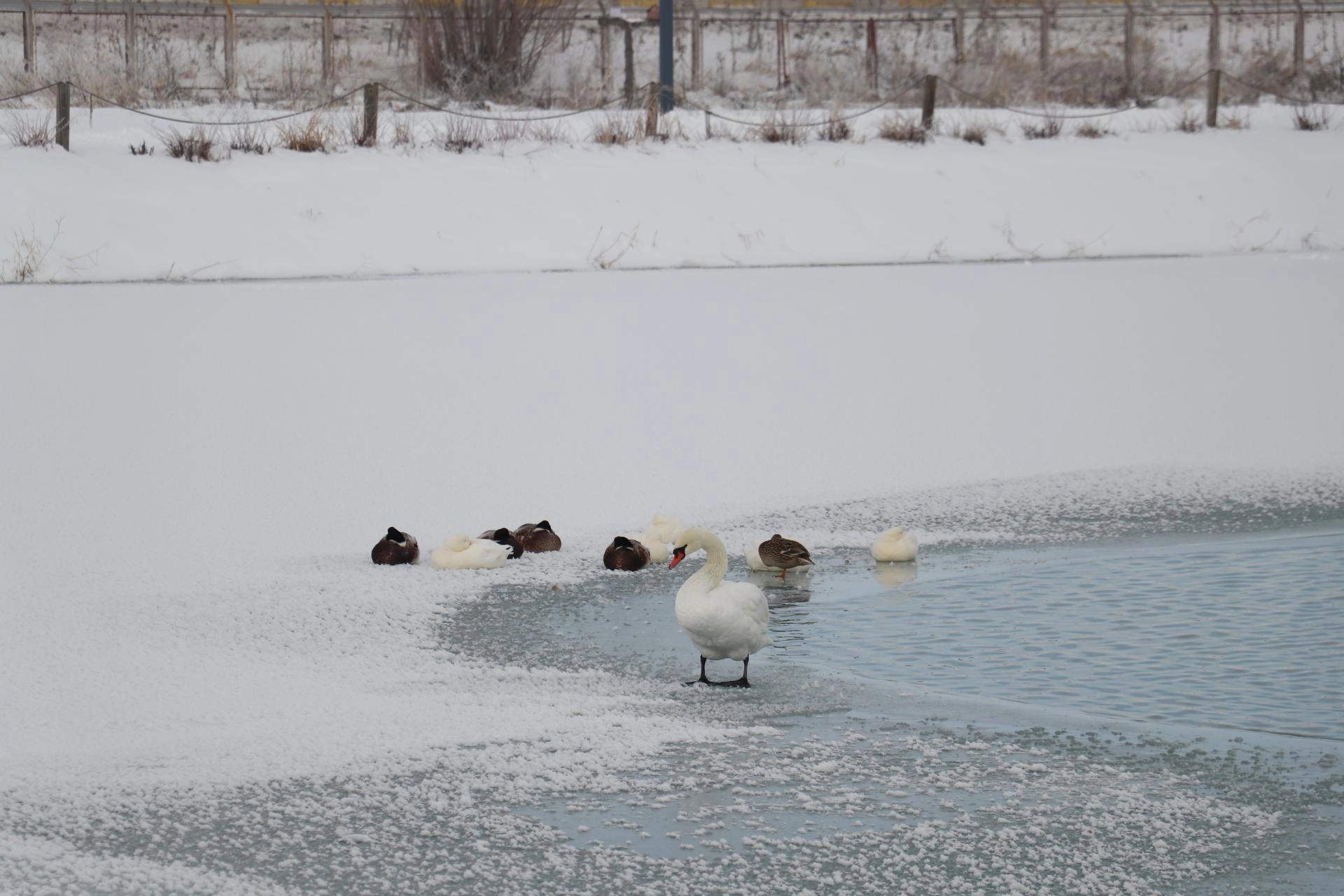 Öte yandan, buz tutan Cumhuriyet Üniversitesi Yerleşkesi'nde bulunan Hasbahçe Göleti'ndeki ördeklerin buzun üzerinde dinlendikleri görüldü.