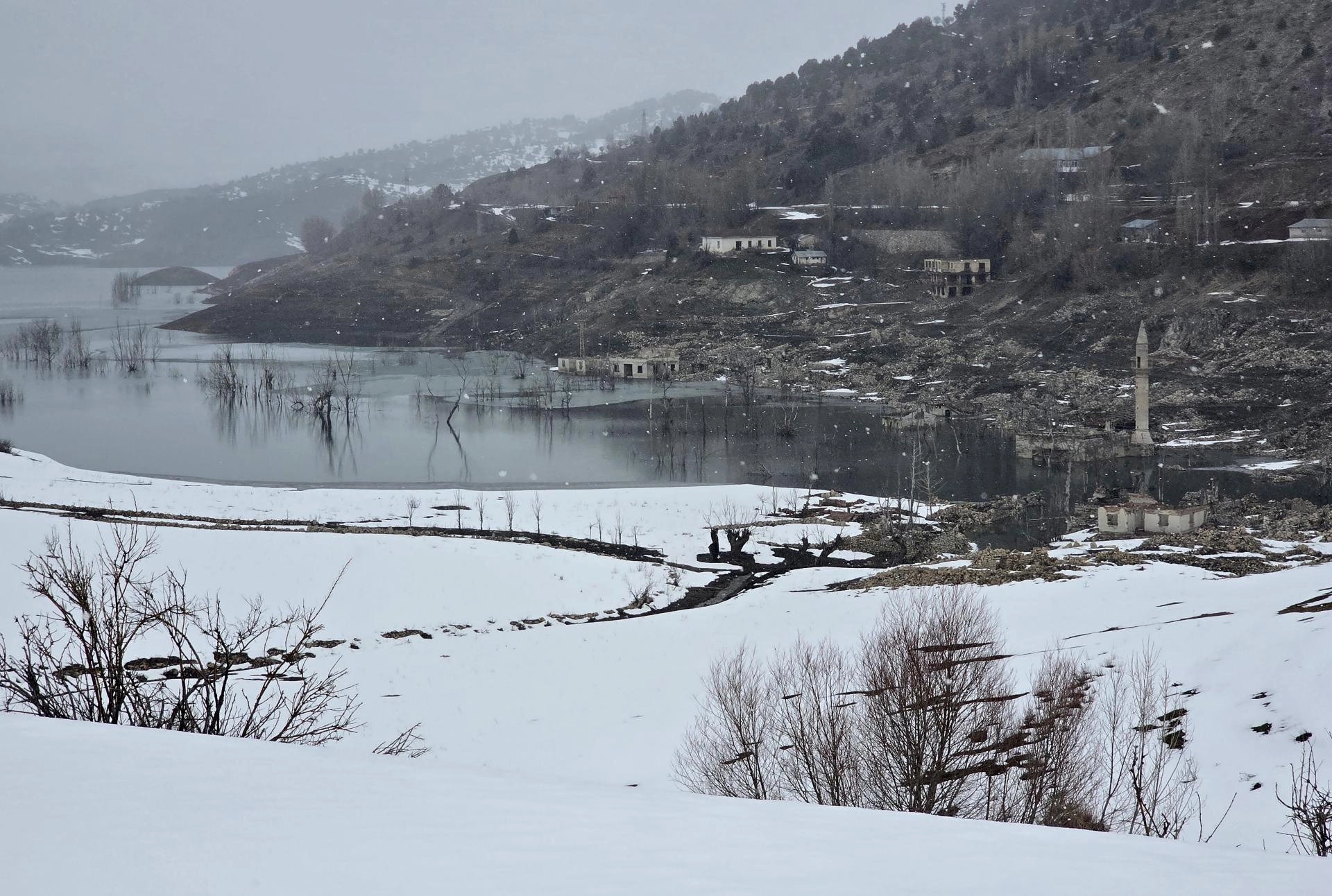 Baraj sularının çekilmesiyle kuraklık döneminde tamamen ortaya çıkan Pusat köyünün eski yerleşim alanı, su seviyesinin yeniden yükselmesiyle tekrar sular altında kalmaya başladı.