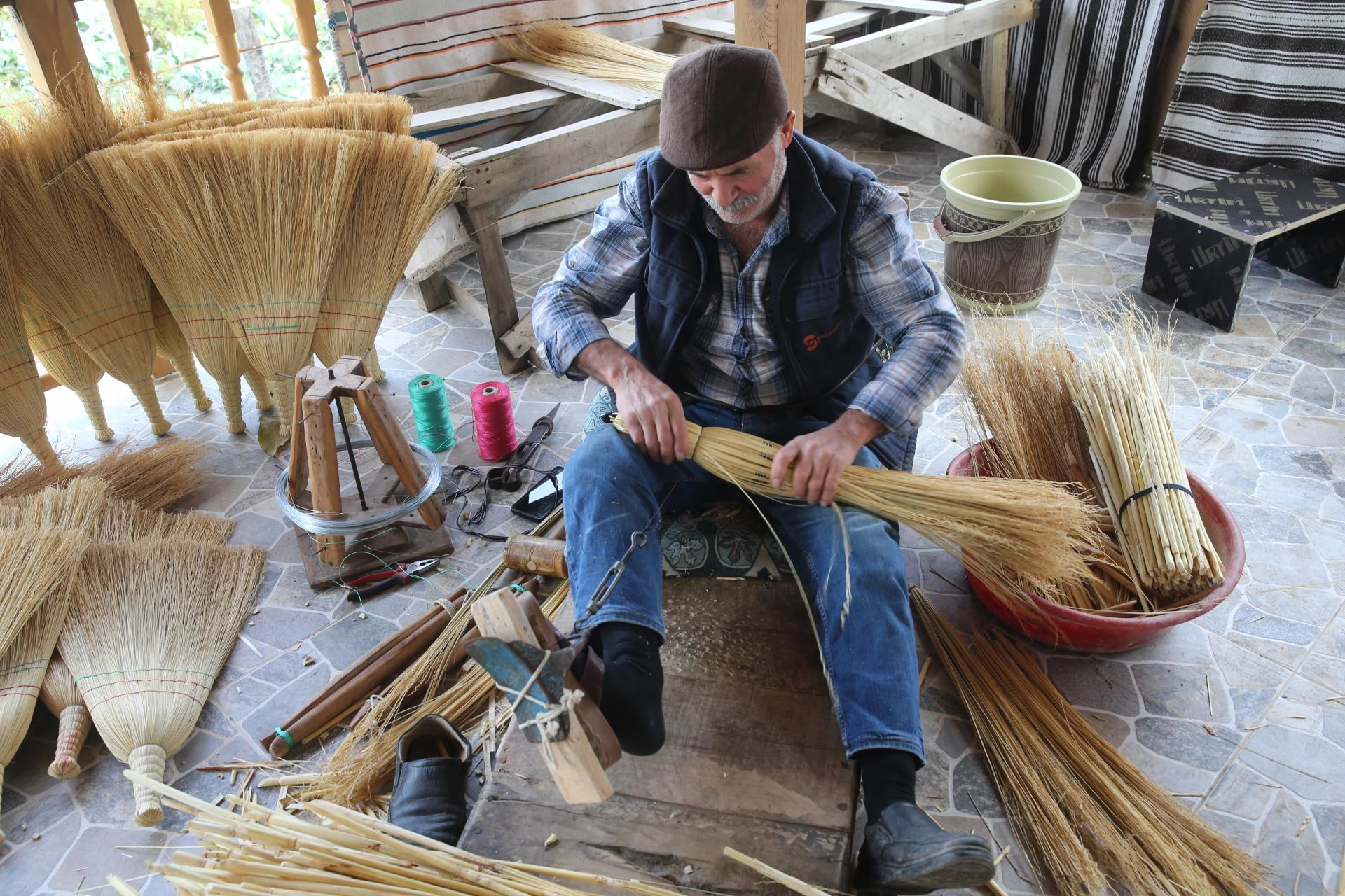 Mesleğin ölmediğini ancak talebin çok azaldığını belirten Fırat, "Gelir kaynağımız bu. Köyümüzde haftalık 1000 süpürge üretiliyor." dedi.