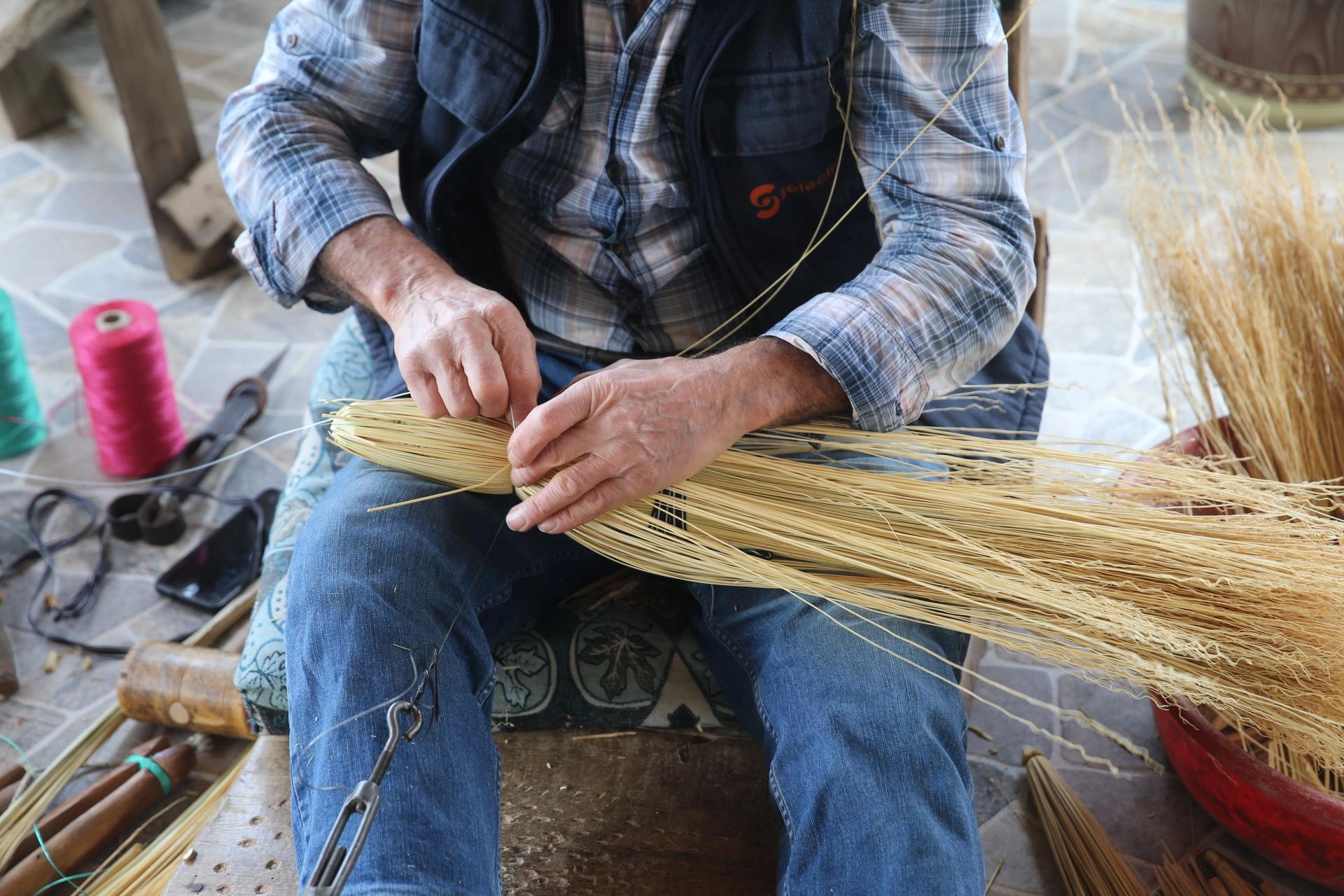 Köyde süpürgeciliği devam ettirenlerden Hüseyin Fırat, AA muhabirine, 54 yıldır ekmeğini bu işten çıkardığını söyledi.