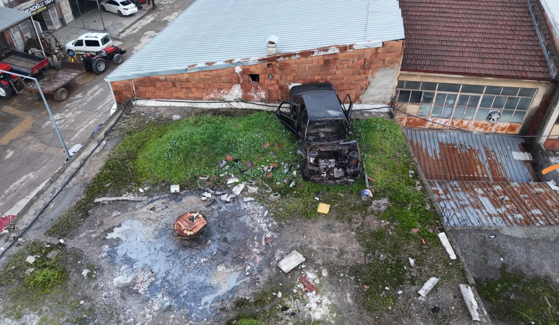 Çatıyı kontrol etmek üzere iş yerinin üzerine çıkan Ertopuz, burada hurda vaziyette bir otomobil bulunduğunu fark ederek durumu polise bildirdi.