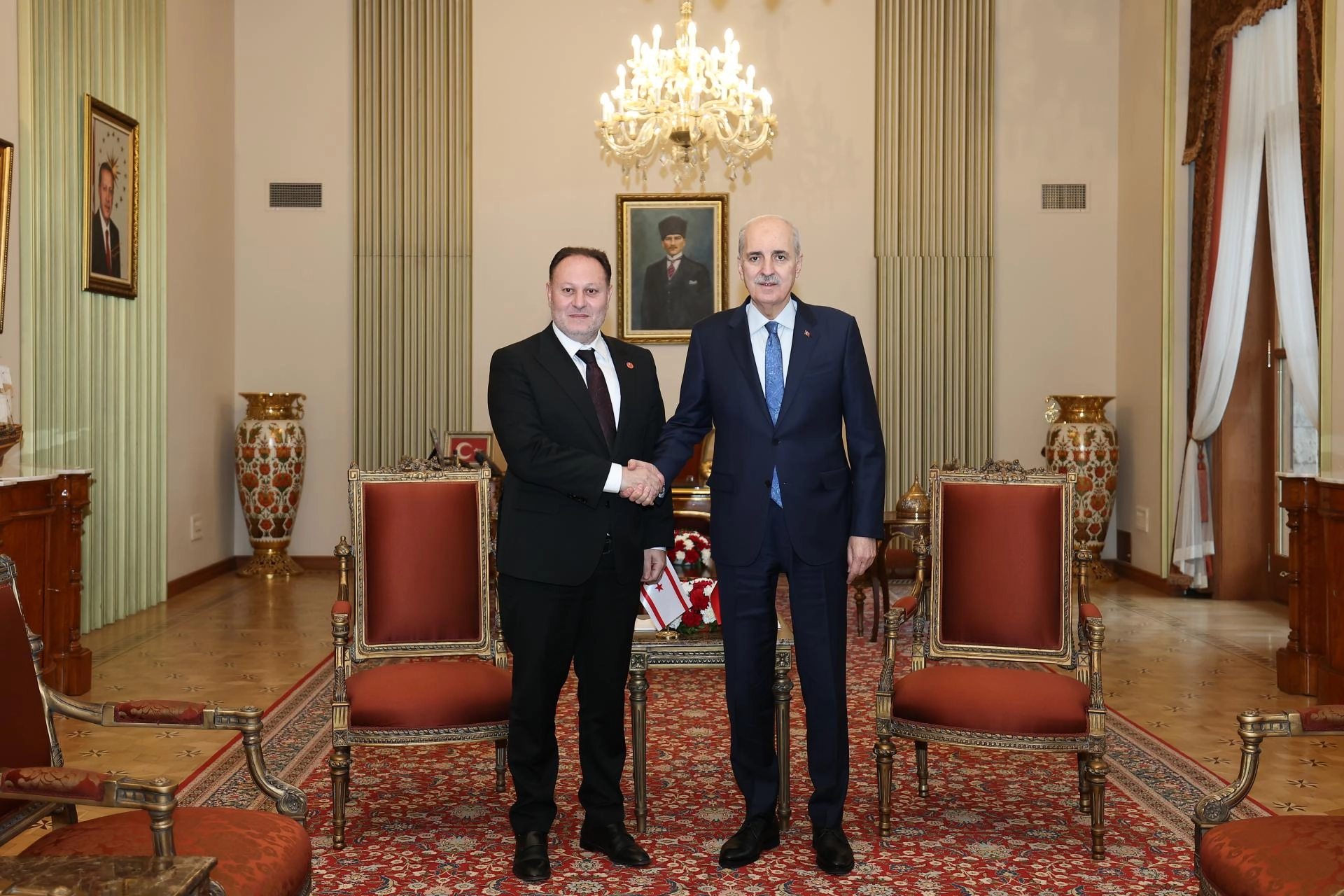 TBMM (AA) - TBMM Başkanı Numan Kurtulmuş, Kuzey Kıbrıs Türk Cumhuriyeti (KKTC) Cumhuriyet Meclisi Başkanı Ziya Öztürkler ile bir araya geldi.