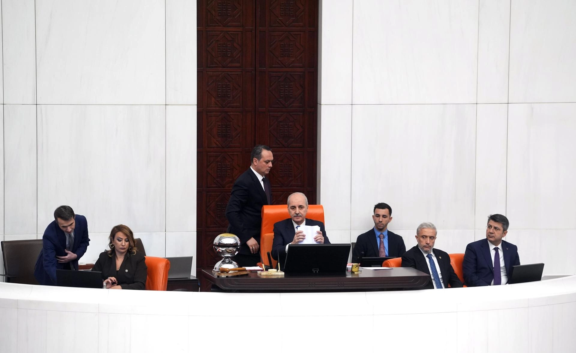 TBMM Başkanı Kurtulmuş, Genel Kurul Salonu'nda bulunabilecek üyeler dışındaki dinleyicilerin ve görevlilerin dışarıya çıkmaları gerektiğini ifade etti.
