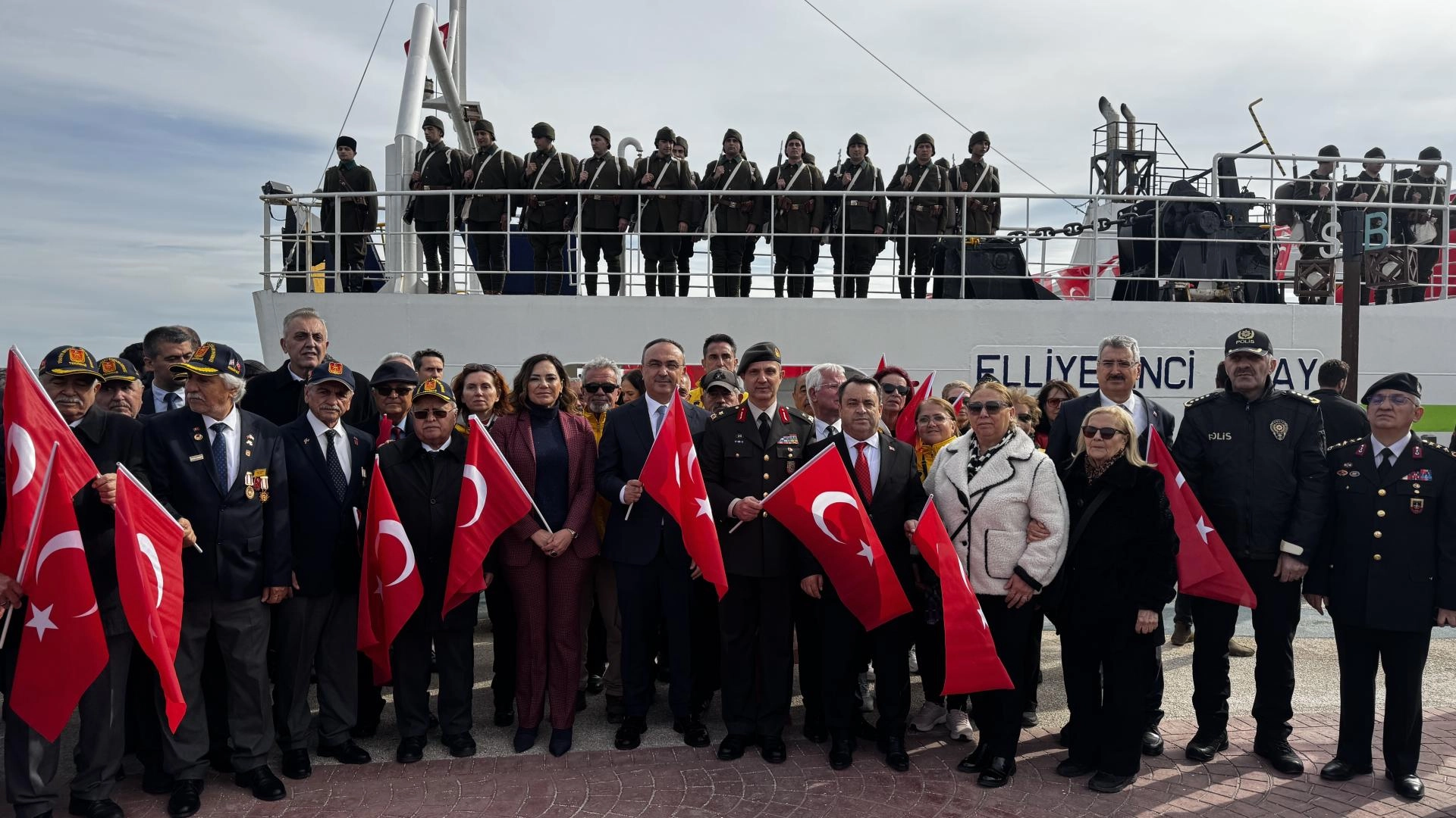 Vatandaşlar temsili olarak gemiye binen askerleri dualarla Çanakkale'ye uğurladı.