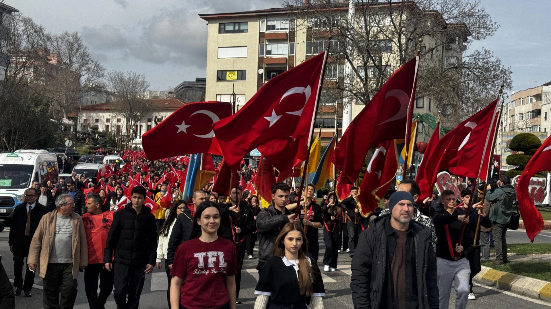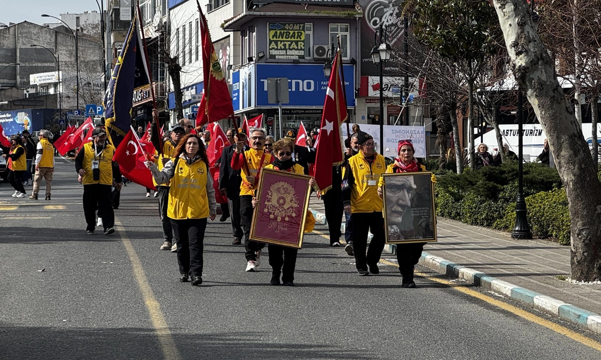 27. ve 57. Alayları Yaşatma ve Araştırma Gönüllüleri Derneği üyeleri ve vatandaşlar, 57. Alay'ın Çanakkale Cephesi'ne hareket ettiği noktalardan biri olan Yarçeşme Barakaları'ndan ellerinde Türk bayraklarıyla yürüyerek, Valilik önündeki Atatürk Anıtı'na geldi.