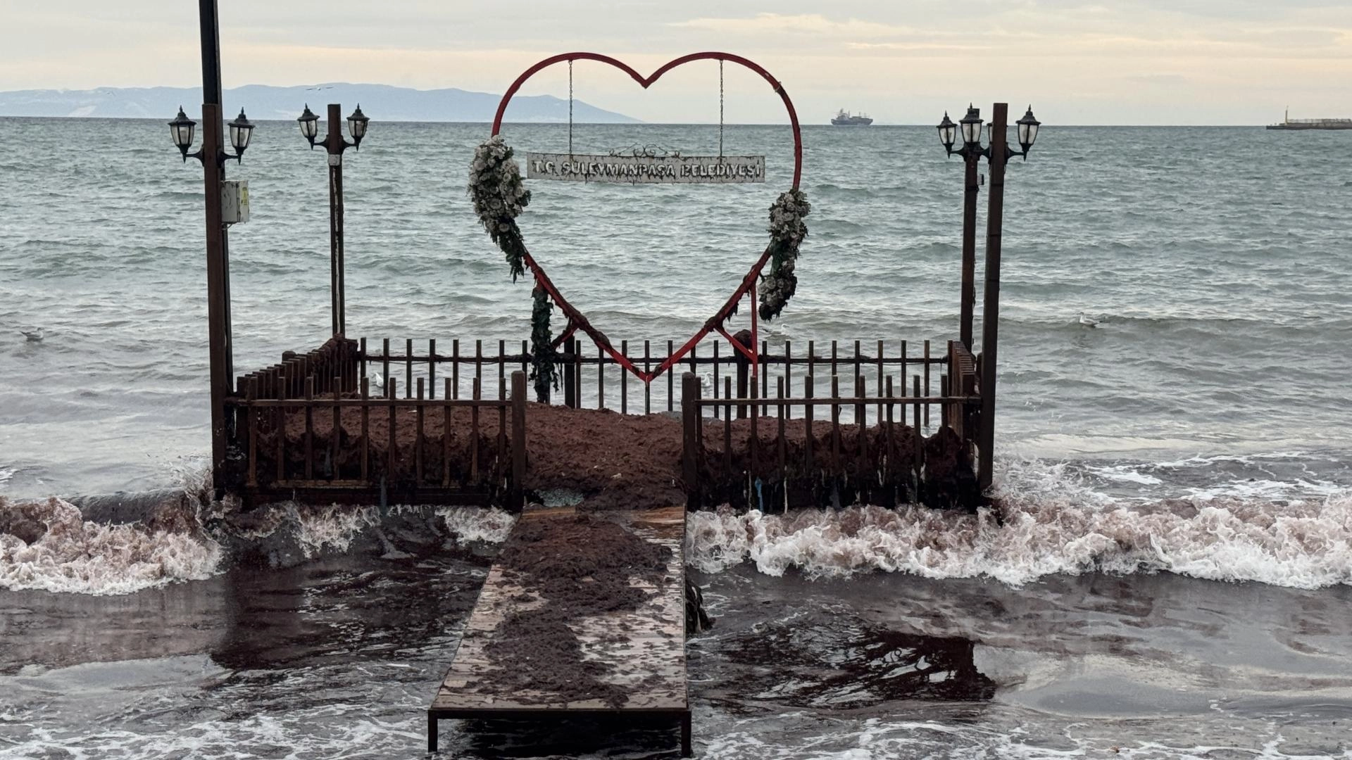 Kentte 7 gündür etkili olan lodosla oluşan dalgalar, kıyıya yosun ve çeşitli atıklar sürükledi.