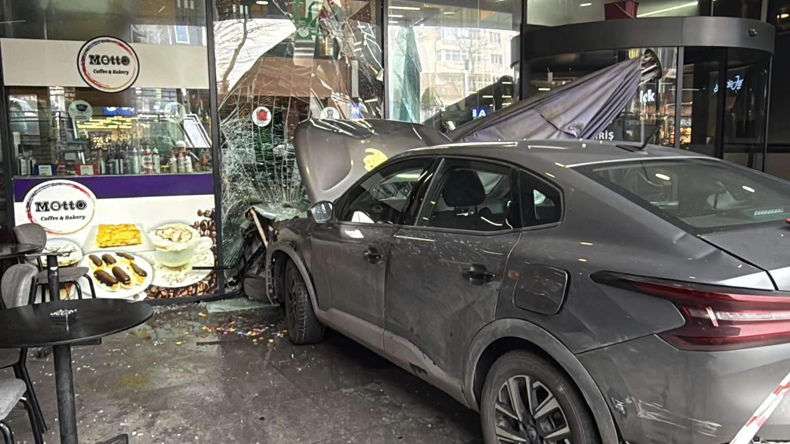 Sultan K. idaresindeki 34 NZY 056 plakalı otomobil, Alipaşa Mahallesi'nde sürücünün direksiyon hakimiyetini kaybetmesi sonucu yaklaşık 3 metre yükseklikten demir trabzanları kırarak bahçeye düştü, ardından alışveriş merkezinin camlarını kırarak bir iş yerine girdi.