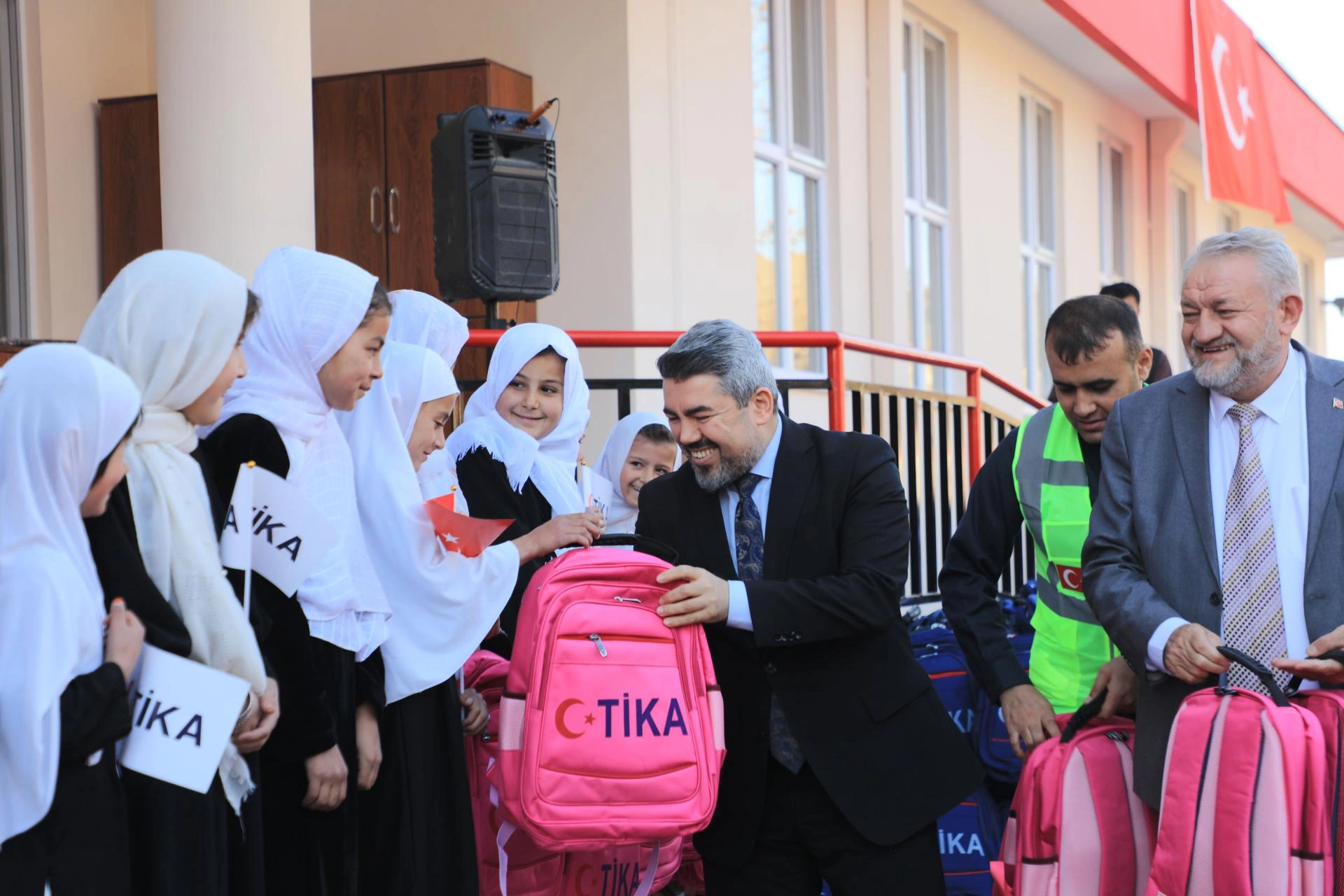Açılışta, tüm öğrencilere okul çantası ve kırtasiye seti de dağıtıldı.