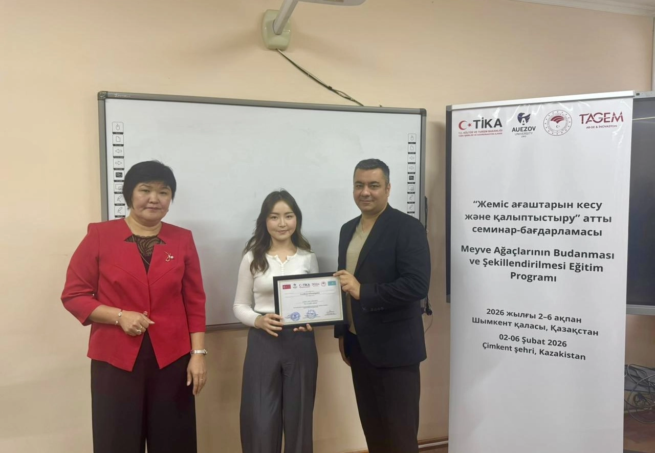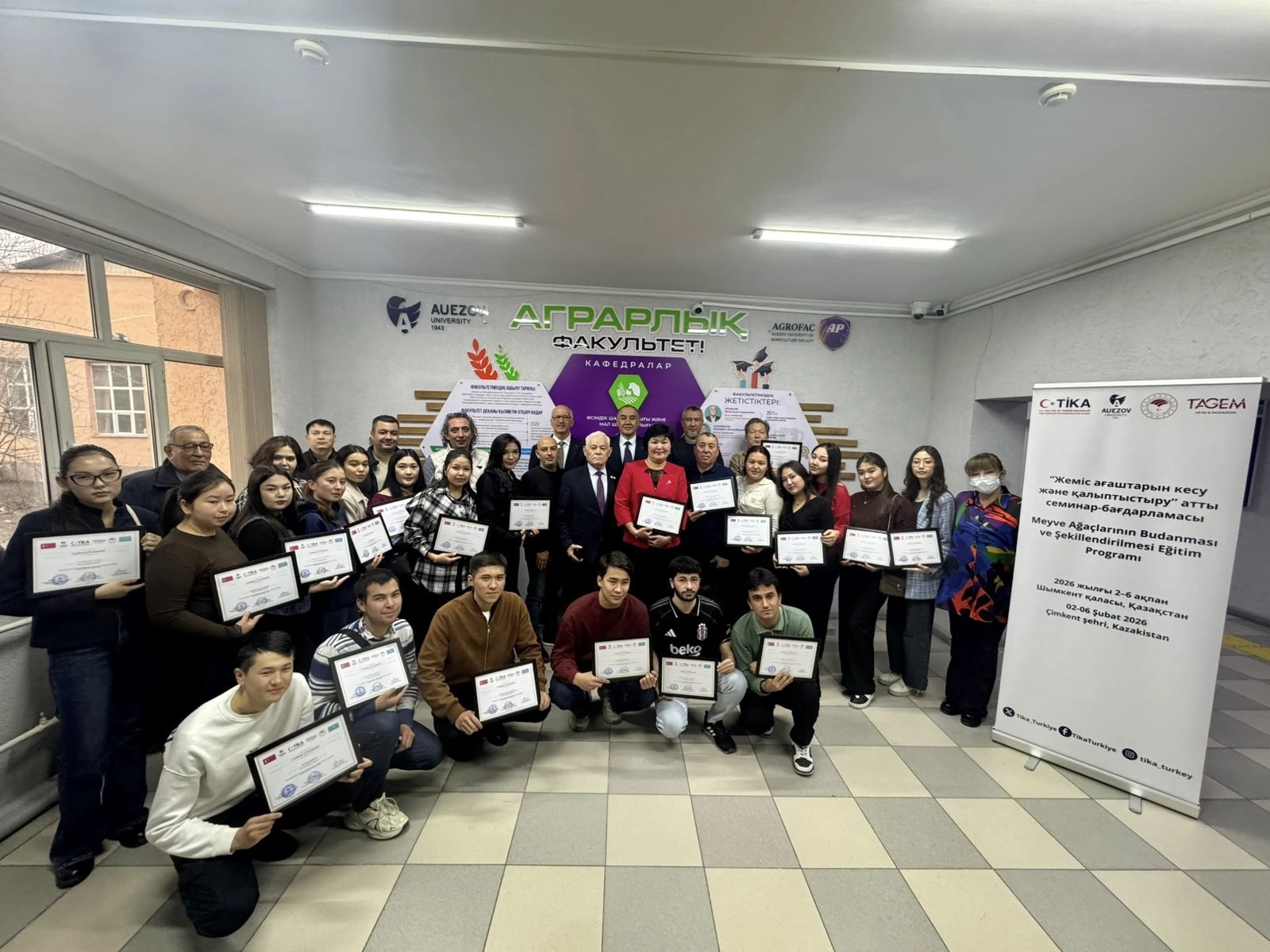 Muhtar Auezov Güney Kazakistan Araştırma Üniversitesi ile Türkiye’nin önemli araştırma kuruluşlarından Eğirdir Meyvecilik Araştırma Enstitüsü işbirliğinde yürütülen program kapsamında, yerli akademisyenler, öğrenciler ve bölgedeki çiftçilerden oluşan geniş bir katılımcı kitlesine meyve ağaçlarında şekillendirme ve budama başta olmak üzere modern bakım ve yetiştirme yöntemlerine ilişkin teorik ve uygulamalı eğitimler verildi.