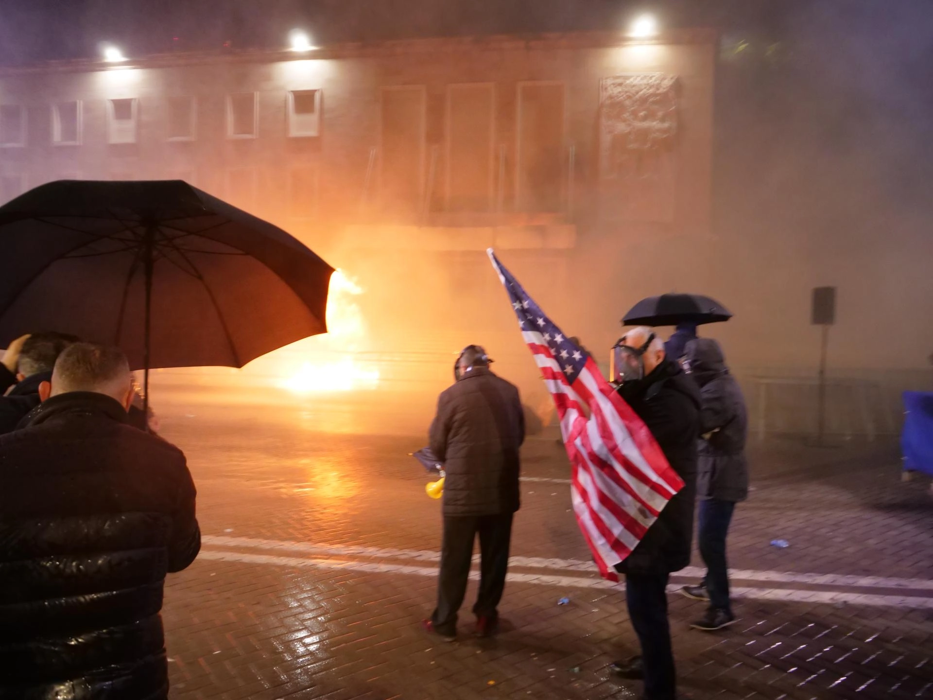Göstericiler, Berisha'nın konuşmasının ardından meclis binasına yürüdü. Burada göstericiler, meclis binasına molotofkokteyli ve havai fişek attı.