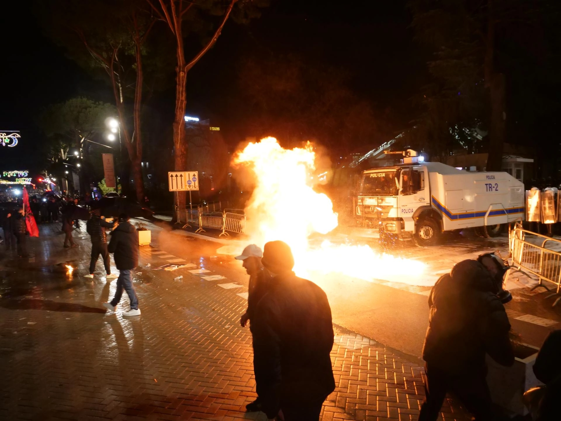 Edi Rama'nın Başbakanlığını yaptığı hükümetin istifasını talep eden binlerce gösterici, ülkede yolsuzluk yapıldığını savunarak Başbakanlık binasına molotofkokteyli ve havai fişek attı.
