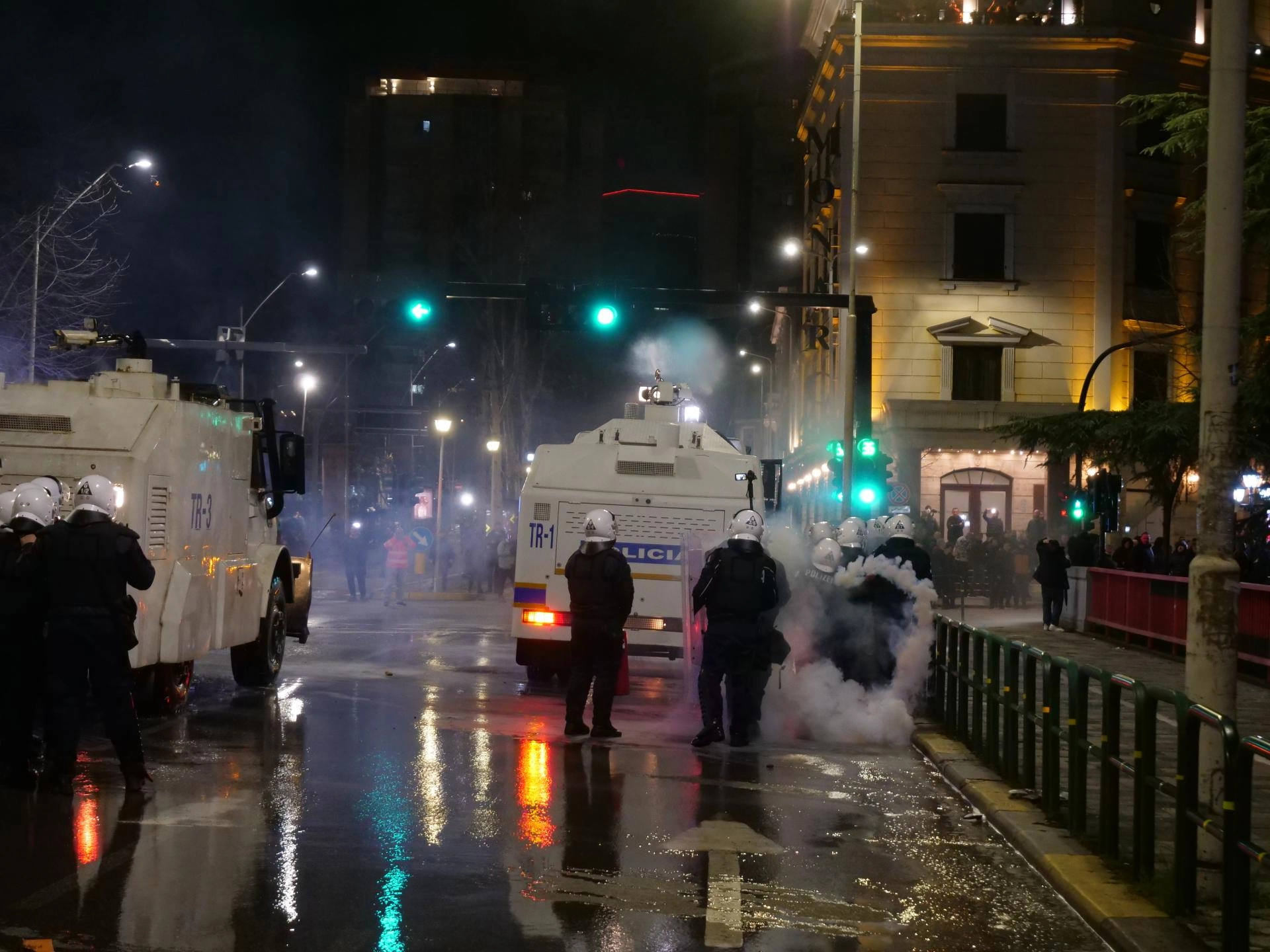 Yüzlerce polisin görevlendirildiği gösteri sırasında, Tiran'da birçok yol trafiğe kapatıldı.