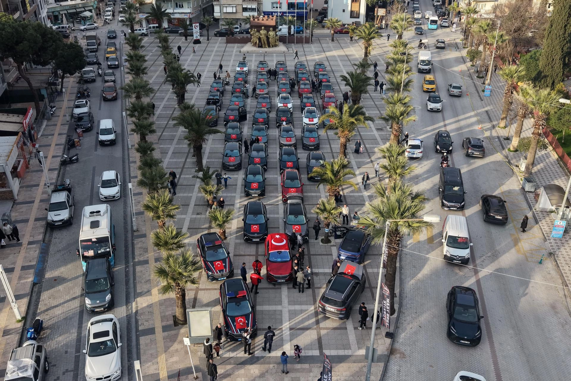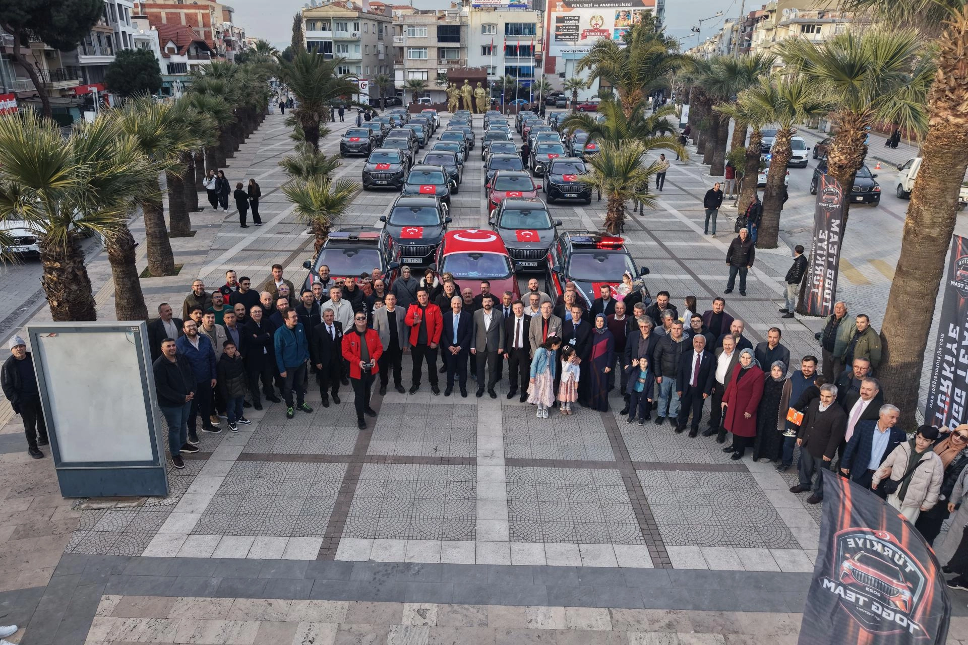 Turgutlu İmam Hatip Anadolu Lisesi ve "TOGG Team Türkiye" grubu tarafından düzenlenen etkinlik kapsamında, TOGG'un T10X ve T10F modeli araç sahipleri ilçede şehit aileleri ve gazilerle buluştu.