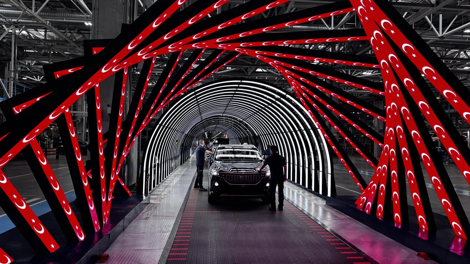 Togg'un T10X ve T10F modellerinin üretim ve son olarak kampüsten çıkış süreçleri adım adım basın mensuplarına anlatıldı.