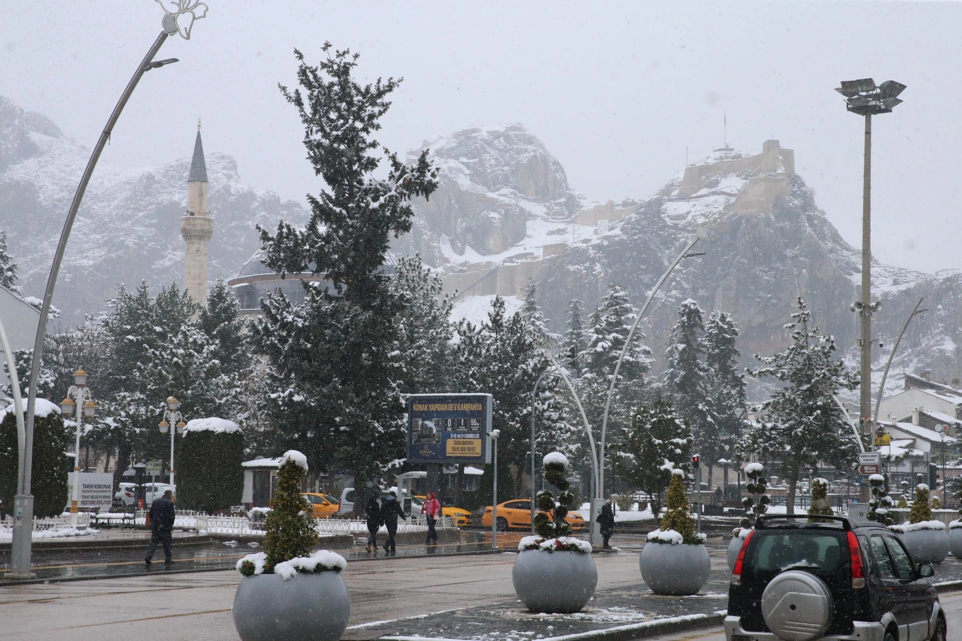 Gece saatlerinde başlayan kar yağışı kent merkezinde devam ediyor.