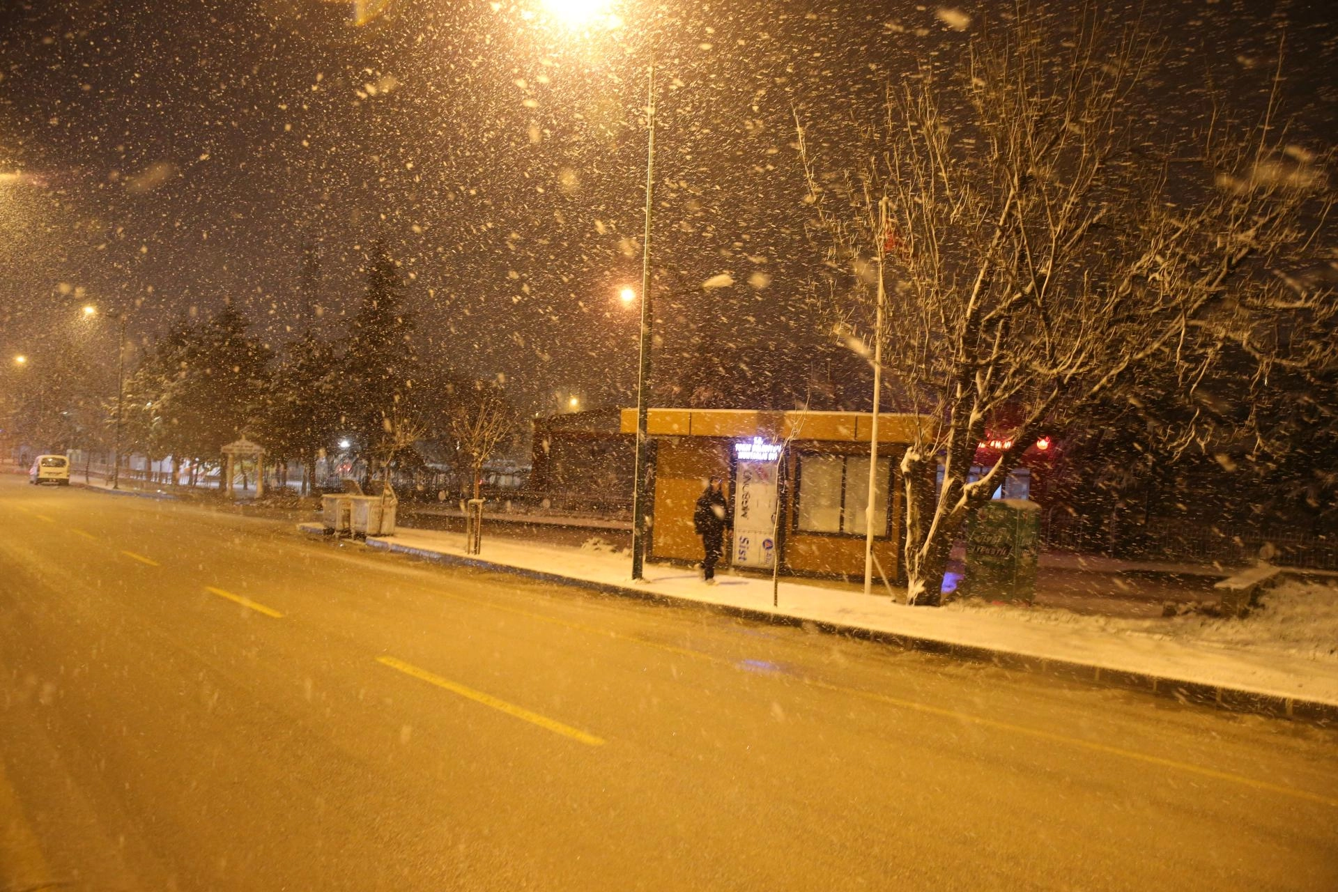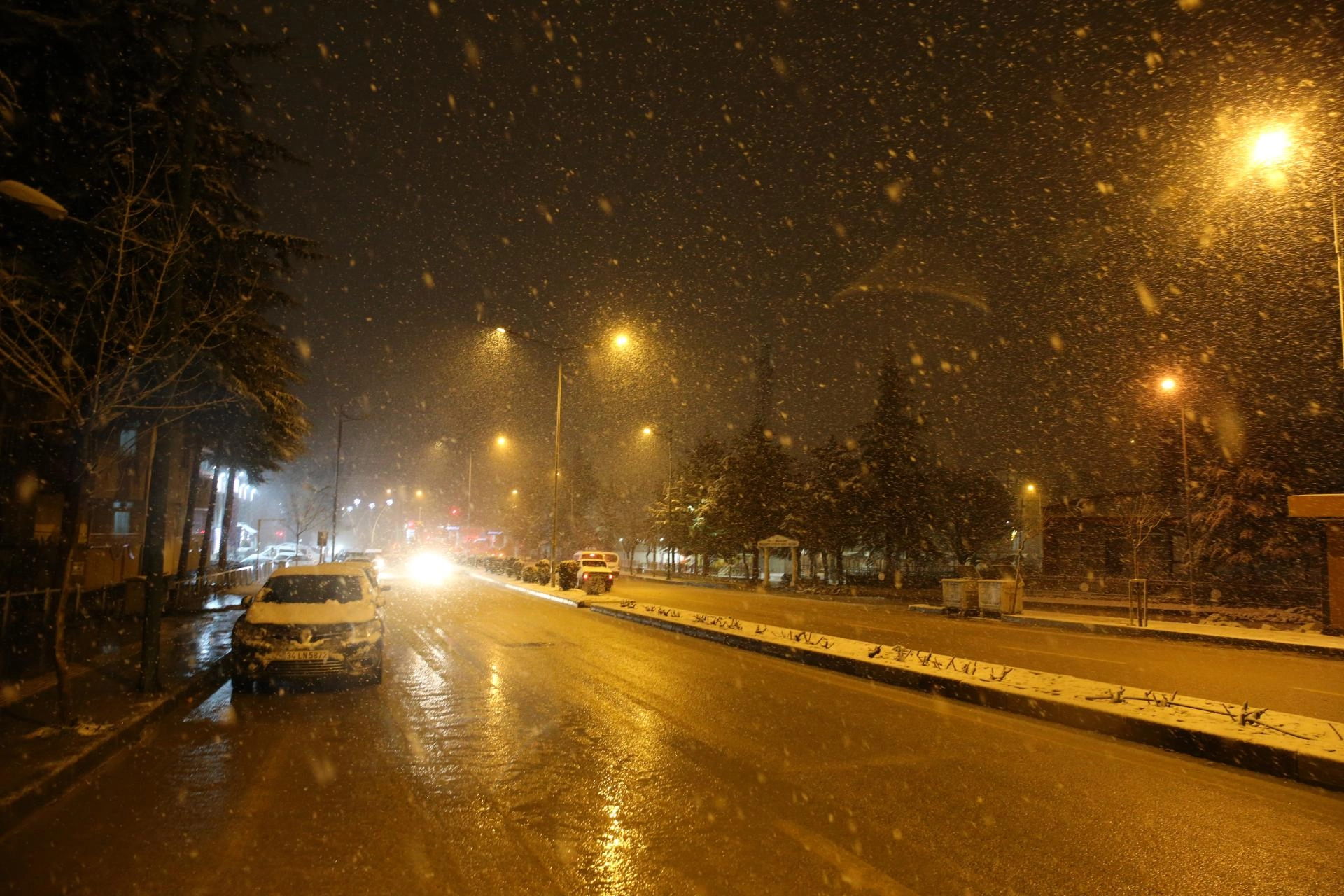 Kentte akşam saatlerinde başlayan kar yağışı etkisini sürdürüyor.