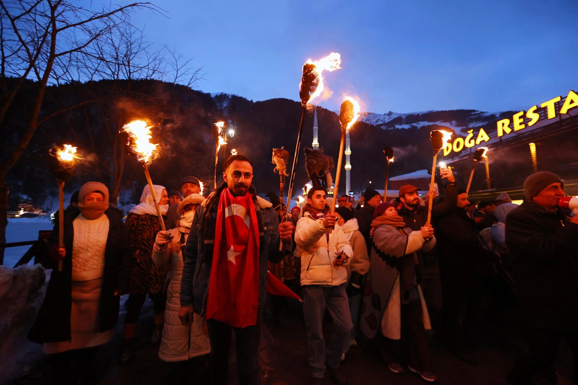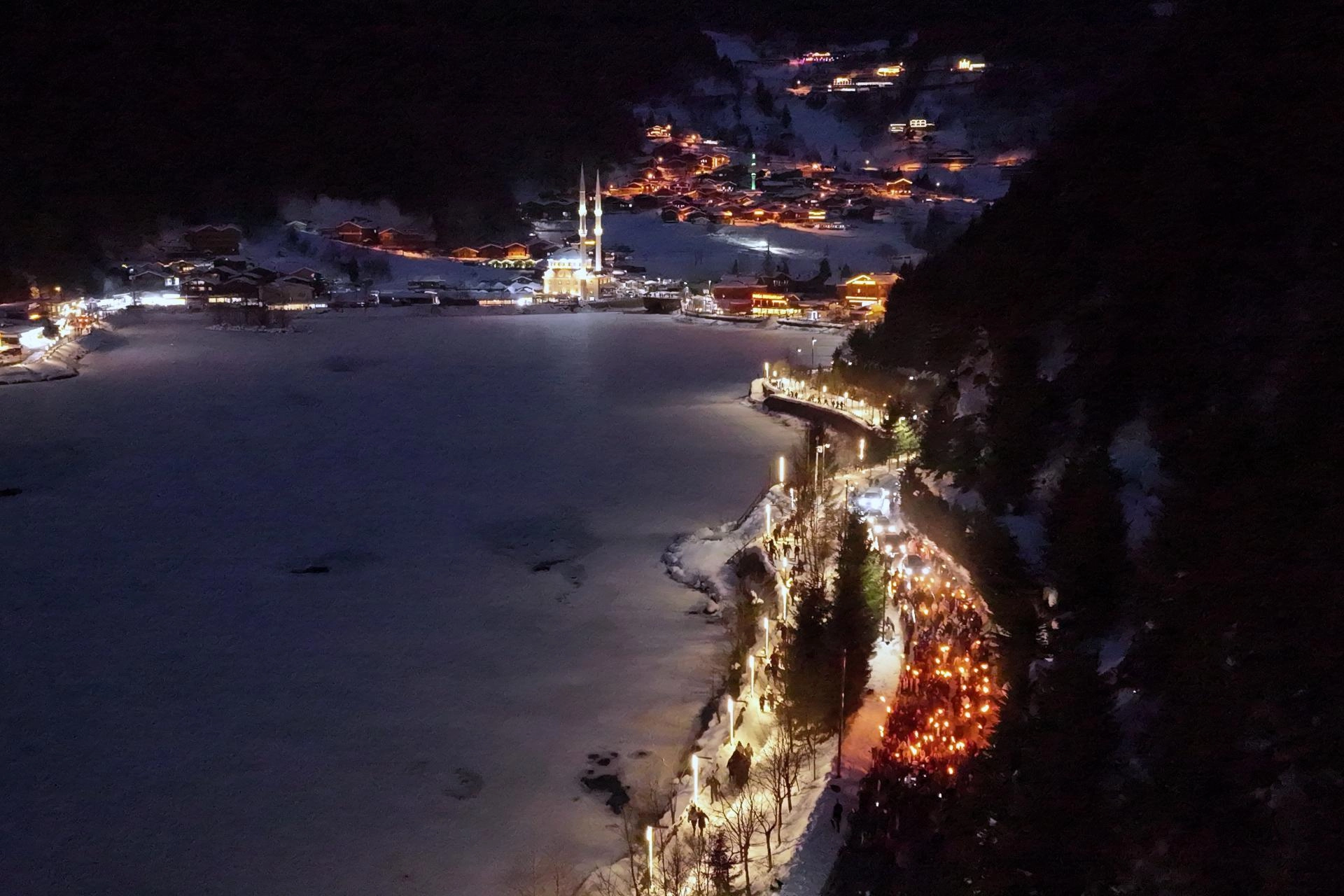 Valilik koordinesinde Büyükşehir Belediyesi ile Trabzon Ticaret ve Sanayi Odasının organize ettiği "Uzungöl Kış Festivali"nde kortej yürüyüşü düzenlendi. Katılımcılar, konser alanına kadar meşalelerle yürüdü.