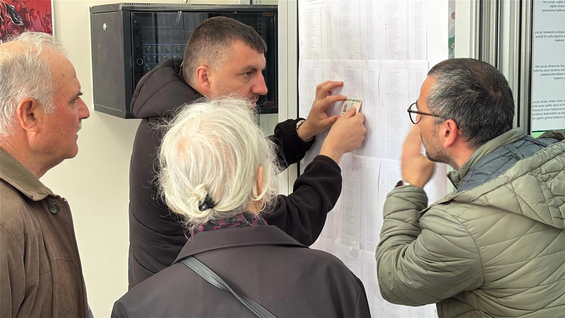 Oy kullanma işlemleri öncesinde gelenler, sandıkların açılmasını beklerken bazı seçmenler listelerde isimlerini kontrol etti.