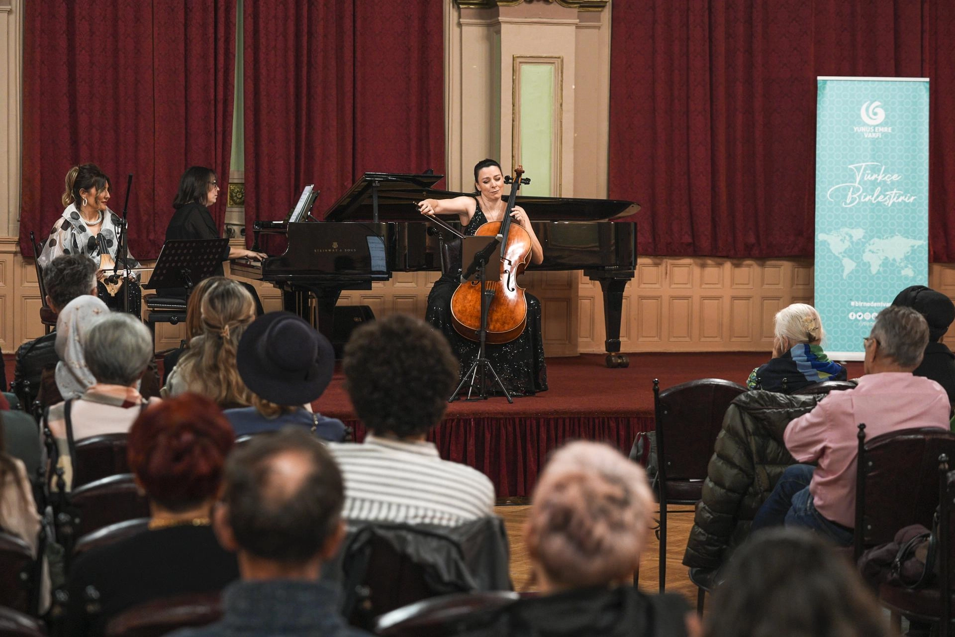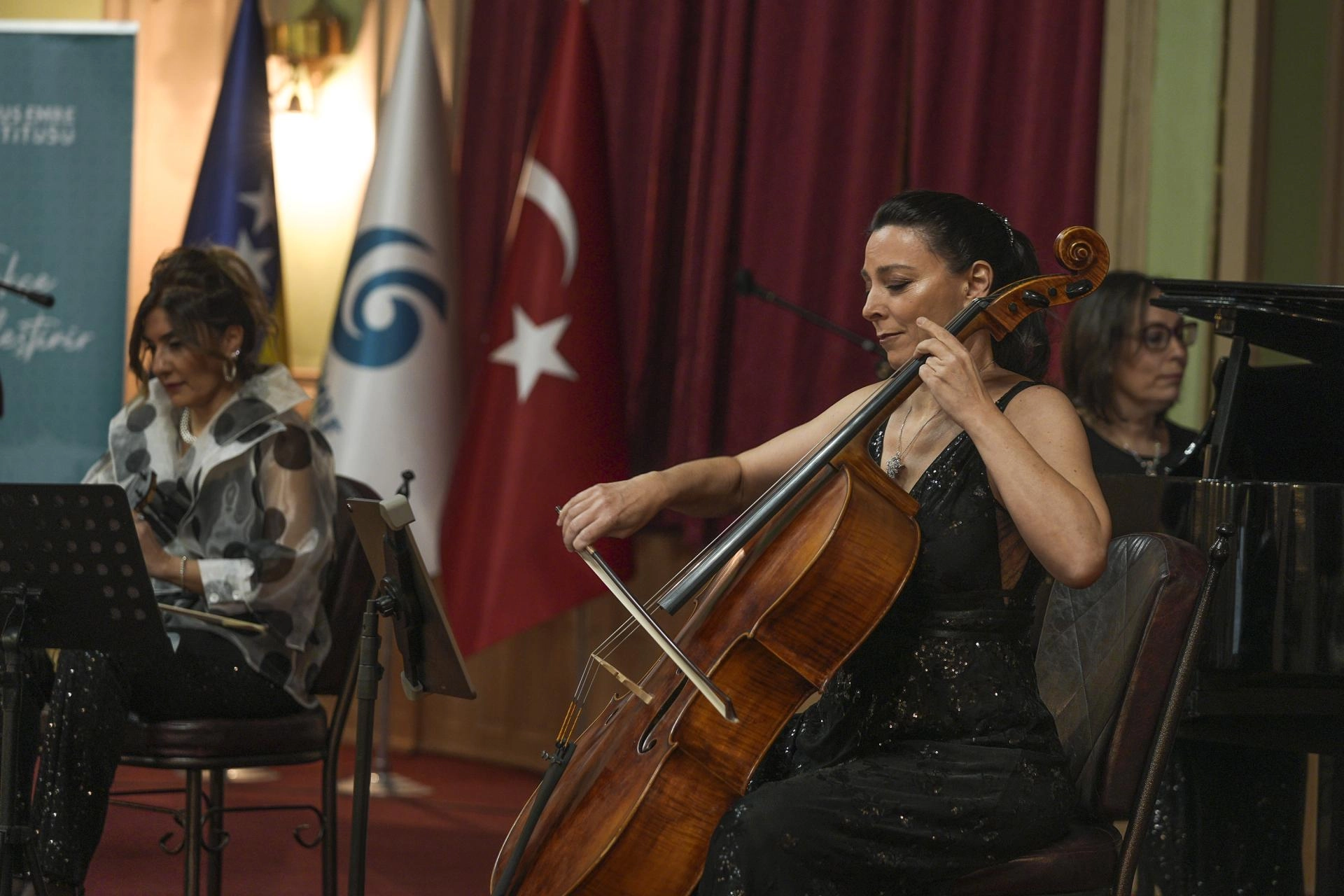 Yunus Emre Enstitüsü'nün (YEE) ev sahipliğinde Saraybosna Orduevi Konser Salonu'nda düzenlenen konserde, Trio Alla Turca grubu adına Prof. Dr. Hatice Doğan Sevinç klasik kemençe, Doç. Dilbağ Tokay viyolonsel ve Doç. Dr. Emine Serdaroğlu da piyano çaldı.