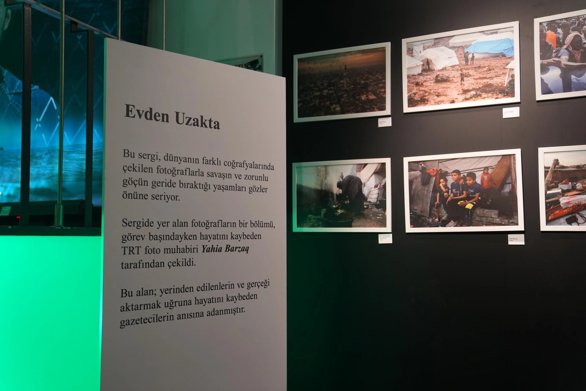 Görev başındayken şehit olan TRT foto muhabiri Yahia Barzaq'ın çalışmalarının da yer aldığı sergi, yerinden edilen insanlara ve görevleri sırasında hayatını kaybeden gazetecilere ithaf edildi.