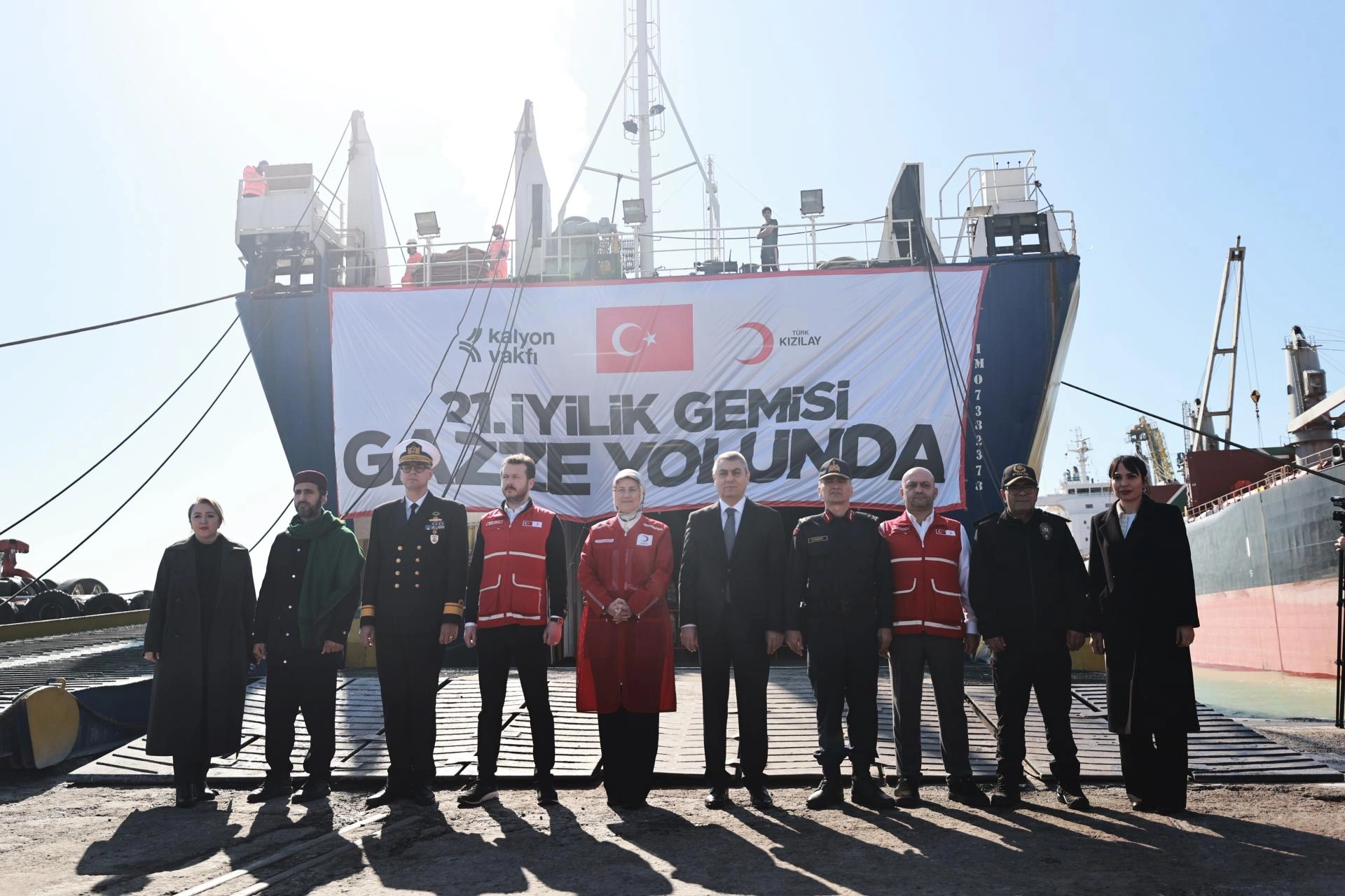 Türk Kızılay Genel Başkanı Fatma Meriç Yılmaz, törende yaptığı konuşmada, duanın, şefkatin ve bereketin en fazla arttığı merhamet ayı ramazanın ilk gününde Gazze'ye en büyük "İyilik Gemisini" göndermenin mutluluğunu yaşadıklarını söyledi.