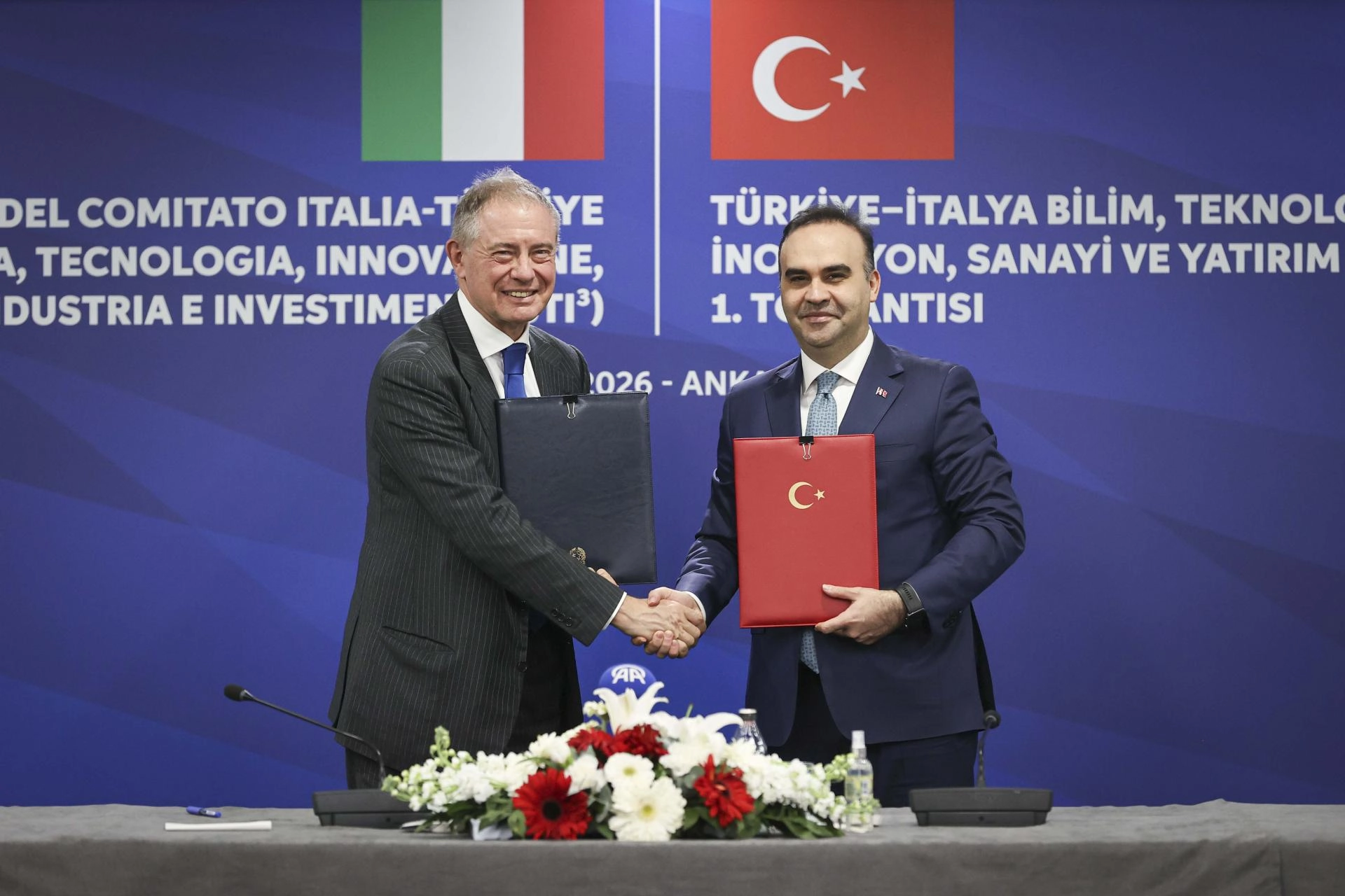Türkiye-İtalya Bilim, Teknoloji, İnovasyon, Sanayi ve Yatırım (STݳ) Komitesi'nin ilk toplantısı ve mutabakat zaptı imza töreni Sanayi ve Teknoloji Bakanı Mehmet Fatih Kacır ve İtalya İşletmeler ve Made in Italy Bakanı Adolfo Urso'nun teşrifleriyle Sanayi ve Teknoloji Bakanlığı'nda gerçekleştirildi.